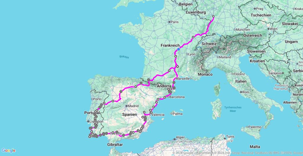 Unsere aktuelle Reise:Portugal: … Brotas; Montargil; Ponte de Sor; Abrantes; Sertã; Oleiros; Covilhã; Belmonte; Guarda; AlmeidaSpanien: Salamanca; Villamuriel de Cerrato; Logroño; PamplonaFrankreich: Oloron-Sainte-Marie; Tanus; Lapalisse zum aktuellen Beitrag Mehr Vorhersagen: Prévisions météo 25 jours Übersicht Wohnmobil Übersicht Kontinente