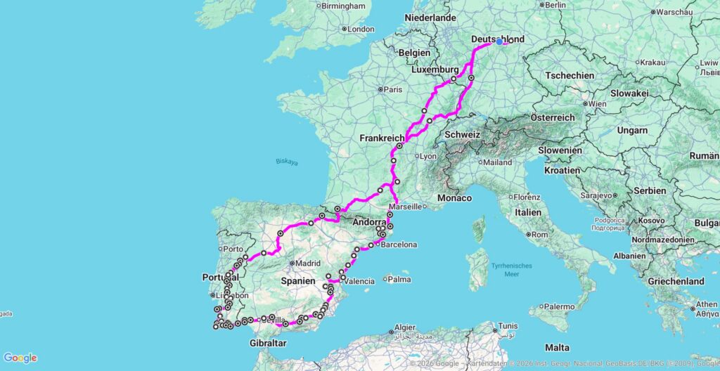 Unsere aktuelle Reise:Portugal: … Sertã; Oleiros; Covilhã; Belmonte; Guarda; AlmeidaSpanien: Salamanca; Villamuriel de Cerrato; Logroño; PamplonaFrankreich: Oloron-Sainte-Marie; Tanus; Lapalisse; LangresDeutschland: Homburg; Hastrungsfeld zum aktuellen Beitrag Mehr Vorhersagen: wetterlabs.de Übersicht Wohnmobil Übersicht Kontinente