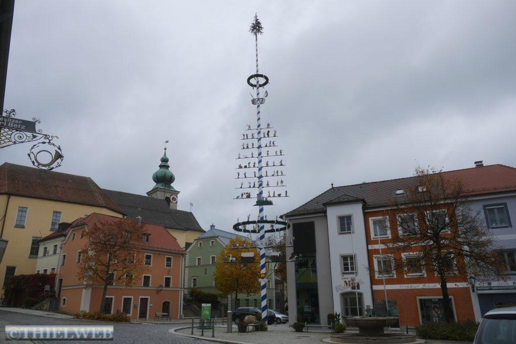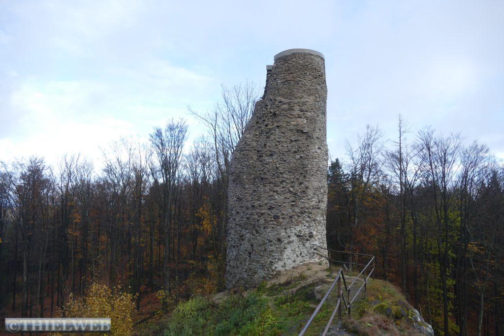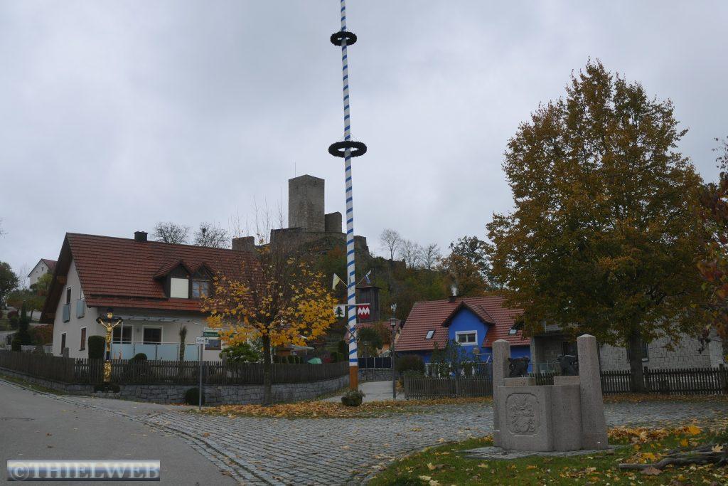 Leider hielt die Freude über den Landstrom nicht lange an, da sich zwei weitere Wohnmobile an die zweite Steckdose angeschlossen hatten und die Sicherung rausflog. So waren die 5°C am Morgen schon eine Herausforderung. Aber die Sonne lacht und wir begeben uns auf die Goldsteig-Panorama-Tour. Erster Anlaufpunkt ist auf dem Wanderweg Nr. 2 „Durchs Oberviechtacher Hochholz“ der weltweit größte Bierkrug (3,8 m hoch) in Lukahammer. Von hier folgen wir dem Sautreiberweg zum Burgstall Wildstein. Der restaurierte Schalenturm aus dem 15. Jahrhundert ist noch gut zu erkennen. Besser ist jedoch der herrliche Ausblick über den Oberpfälzer Wald. Der Weg führt durch Wald und Flur und irgendwann sind wir wieder auf dem Goldsteig und kommen zur Wallfahrtskirche St. Jakob. Von hier ist es nun nicht mehr weit zurück zu unserem Wohnmobil.