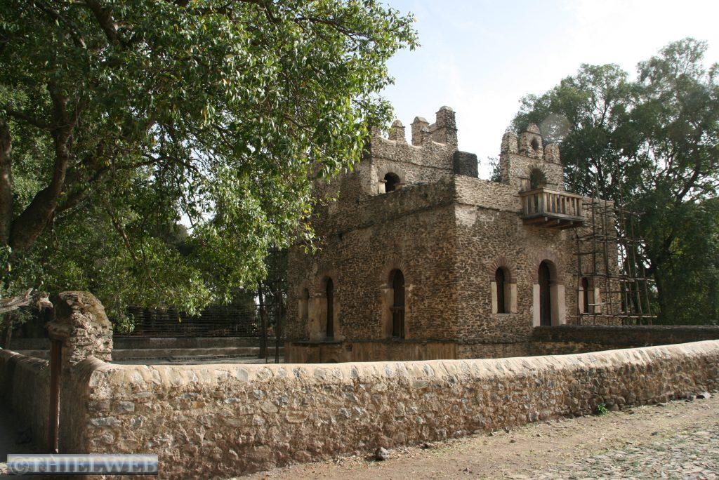 Ca. 180 km von Bahir Dar entfernt, erreichen wir in einer Höhe von 2.330 Metern Gondar, die Königsstadt des 17. und 18. Jahrhunderts die von 1636 bis 1855 die äthiopische Hauptstadt war. Gondar war einmal ein kraftvolles und lebendiges Zentrum von religiöser Gelehrsamkeit und Kunst. Mehr als zweihundert Jahre herrschte eine Blütezeit der Kunst, der Musik, des Tanzes, der Literatur und vieler anderer Disziplinen. Hier erleben wir die mysteriöse Atmosphäre, hervorgerufen durch die zahlreichen faszinierenden historischen Gebäude und Reliquien, die es in einem großflächigen Areal nicht weit vom Zentrum Gondars zu sehen gibt. Wer die Schlösser gebaut hat, ist nicht abschließend geklärt, man vermutet aber portugiesische, indische und maurische Einflüsse. Es fällt die architektonische Vielfalt auf, die sowohl arabische Einflüsse als auch axumitische Traditionen kenntlich machen. Angeblich ist dies das größte Vorkommen solcher Bauten in Afrika überhaupt. Der älteste und beeindruckendste von Gondars vielen imperialen Bauten ist der Palastbezirk (der Gemp) von Kaiser Fasilidas, der die Stadt ca. 1635 gründete. Hundert Jahre lang wurde innerhalb einer Art Stadtmauer mit 12 Toren weitergebaut, sodass noch sieben größere Gebäude der Gondar-Kaiser stehen. Die Zeit von Kaiser Fasilidas war die Blütezeit der Kunst und Literatur. Debre Berhan Selassie ist die wahrscheinlich schönste Kirche Gondars. Die Klosterkirche wurde während der Herrschaft des Kaisers Iyasu (1682-1706) gebaut und befindet sich etwa einen Kilometer außerhalb der heutigen Stadt. In dem für Besucher zugänglichen Vorraum befinden sich zahlreiche Wandmalereien, die Szenen aus dem alten und neuen Testament zeigen. Beeindruckend sind auch die Deckenmalerei. Die gesamte Holzdecke ist mit geflügelten Engelsköpfen ausgemalt. Eine Legende besagt, dass die Derwische, beim Versuch Feuer zu legen, von Bienen angegriffen und vertrieben wurden.