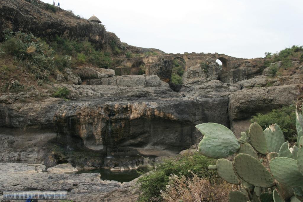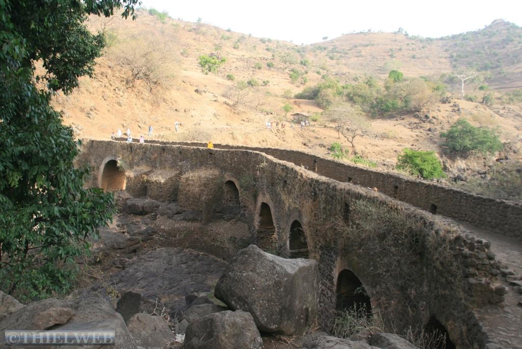 Wir verlassen Bahir Dar und fahren ca. 40 km zu den zweitgrößten Wasserfällen Afrikas, die Tisissat – Wasserfälle des Blauen Nil. Der Name bedeutet „Wasser, das raucht“ und das tut es vornehmlich während der Regenzeit. Dann stürzt das Wasser auf einer Breite von bis zu 400 m ca. 42 m in die Tiefe – eigentlich – denn leider haben die Fälle einiges von ihrer Dramatik verloren, seit oberhalb der Fälle ein großes Kraftwerk gebaut wurde, das die Region mit Strom versorgt. Trotzdem ist unser Ausflug, verbunden mit einer kurzen Wanderung zu den Wasserfällen, ein lohnendes Erlebnis.