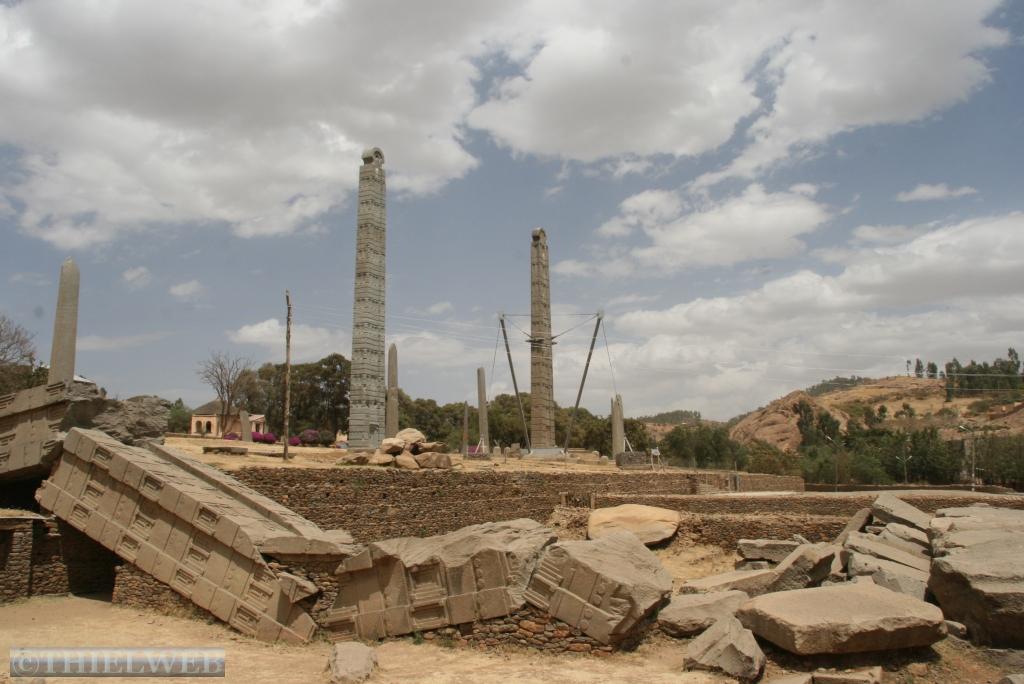 Axum, die Wiege des christlichen Äthiopien und die Hauptstadt des legendären Kaiserreiches Menelik des Ersten. Seine mächtigste Zeit hatte Axum im 3. Jahrhundert n. Chr. und stand damals auf einer Stufe mit den Imperien Persien, China und Rom. Ein Jahrhundert später trat Ezana, Axums König, zum Christentum über und verwandelte sein Reich in einen der ersten christlichen Staaten der Welt. Heute ist die alte Königsstadt des ersten äthiopischen Königreiches die wichtigste Pilgerstätte der äthiopisch-orthodoxen Christen. Nach der Überzeugung der äthiopisch-orthodoxen Kirche befindet sich hier die israelitische Bundeslade mit den Tafeln der Zehn Gebote, die Gott an Moses gesandt hatte. Sie ist das größte Heiligtum Äthiopiens. Nach einer äthiopischen Schrift aus dem 13. Jahrhundert, wurde sie von Menelik, dem Sohn von König Salomon und der Königin von Saba ins Land geholt. Auch heute noch wird sie ständig von einem Mönch bewacht, niemand darf sie sehen, bei Prozessionen wird sie eingehüllt in schweren Brokattüchern mitgeführt, weswegen ihr wahres Geheimnis wohl immer bewahrt bleibt. Bekanntheit erlangte Axum auch durch die gewaltigen zum Himmel ragenden Steinmonolithen, die zum Teil über 2.000 Jahre alt sind. Die Steinhauerarbeiten dieser Stelen, die Grabbauten markieren, erinnern an die Hochhäuser des Yemen. Die höchste, 33 m hohe und über 500 Tonnen schwere Stele zerbrach vermutlich schon bei ihrer Errichtung. Die zweithöchste 25 m hohe Stele wurde während der italienischen Besatzung 1937 von den Faschisten entwendet und an der Piazza di Porta Capena in Rom aufgebaut. Nach äthiopischen Protesten und einem langen diplomatischen Streit wurde sie im April 2005 wieder zurückgegeben und im September 2008 wiederaufgerichtet. Kleinere Exemplare haben bis heute aufrecht der Zeit getrotzt. Die Ruinen von Axum sind seit 1980 UNESCO-Weltkulturerbe.