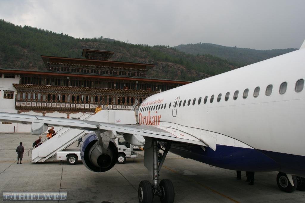 Heute fliegen wir von Paro, einem der berühmt-berüchtigten Flughäfen nach Kathmandu zurück. Nur erfahrenen Piloten ist es gestattet, hier zu landen, da der Anflug als sehr schwierig eingestuft wird. Bei klarem Wetter ist die Sicht auf den Himalaya atemberaubend – die Schneeriesen scheinen zum Greifen nah.