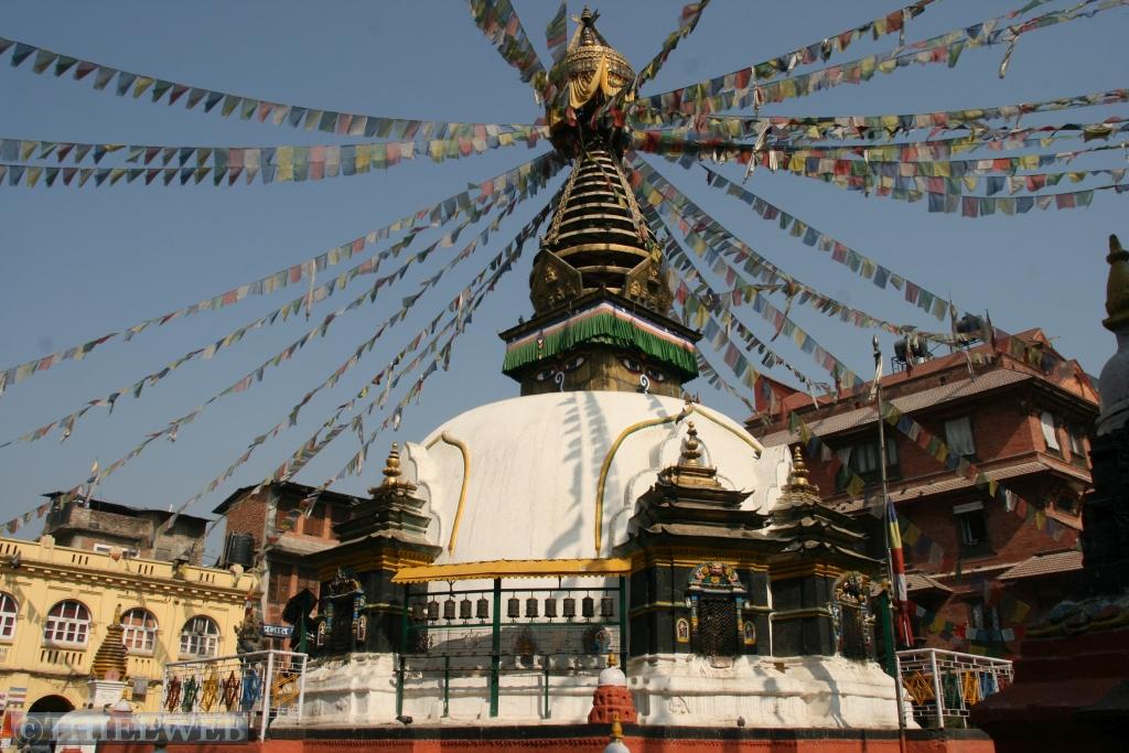 Ganz im Nordosten von Kathmandu befindet sich im Stadtteil Deopatan an den Ufern des Bagmati-Flusses eine der bedeutendsten hinduistischen Verbrennungsstätten Nepals – Pashupatinath. Pashupati bezeichnet eine der vielen Erscheinungsformen Shivas und ist noch heute Schutzgott der nepalesischen Herrscher. Täglich strömen morgens und abends zahlreiche Gläubige nach Pashupatinath, um im Bereich der Tempel Blumen, Kerzen oder Räucherstäbchen zu opfern. Eine eigentümliche Stimmung ergreift uns bei einem Blick auf die den Bagmati umgebenden Ghats. Gläubige vollziehen rituelle Waschungen am Uferbereich, während die Rauchsäulen der Scheiterhaufen in den Himmel steigen, und leuchtend orangefarbene Ketten von Ringelblumenblüten zum Gruß an die Götter und Verstorbenen flussabwärts treiben. Ein Spaziergang führt uns weiter zu dem neben dem Swayambunath-Stupa bedeutendsten buddhistischen Heiligtum des Kathmandu-Tales – Bodnath. Mit seinen 40 m Höhe ist der etwa 8 km nordöstlich von Kathmandu gelegene Sakralbau der höchste seiner Art in der Region. Über allem wachend schauen die Augen Buddhas in alle vier Himmelsrichtungen. Bunte Gebetsfahnen wehen im Wind während Pilger den Stupa im Uhrzeigersinn umwandeln, Gebetsmühlen drehen und dabei hingebungsvoll das Mantra Om Mani Padme hum – „Oh Du Juwel in der Lotosblüte“ wiederholen.