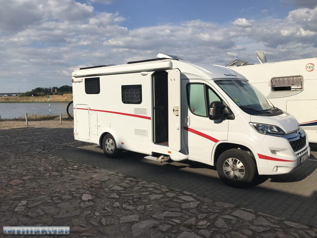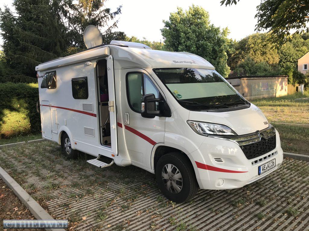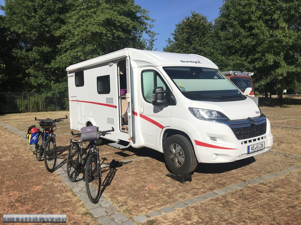 Da unsere Thitronik Alarmanlage und die Fernbedienung vom Schlüssel nicht funktionierten, nehmen wir den Heimweg wieder über unsere Werkstatt Rosseol. Den Termin haben wir vorher vereinbart und so wurde alles zu unserer Zufriedenheit erledigt. Die Wartezeit nutzten wir für eine kleine Radtour über den Saale- und Unstrutradweg bis nach Bugscheidungen und zurück. Da eine Klimaanlage für uns nicht infrage kommt, rät uns die Firma Rossel bei unserer Rückkehr zu einem Lüfter MaxxFan Delux, der uns sofort überzeugt und in Kürze eingebaut wird. Da es schon kurz vor 17.00 Uhr ist, entschieden wir uns noch eine Nacht in Naumburg auf der Vogelwiese zu übernachten. Von verschiedenen Musikrichtung beschallt, die durch kurzen Autorennen auf den ca. 150 m langen Parkplatz unterbrochen werden, sind wir dann doch eingeschlafen.