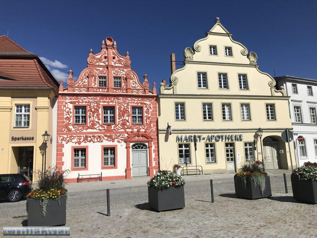 Unser Stellplatz in Luckau liegt direkt an einem kleinen Park. Er wird von der Stadt kostenfrei zur Verfügung gestellt. Nach einer kleinen Pause besuchen wir die Altstadt. Über den Markt mit den Barocken Gibelhäuschen geht es an der alten Stadtmauer zum Napoleonhäuschen.