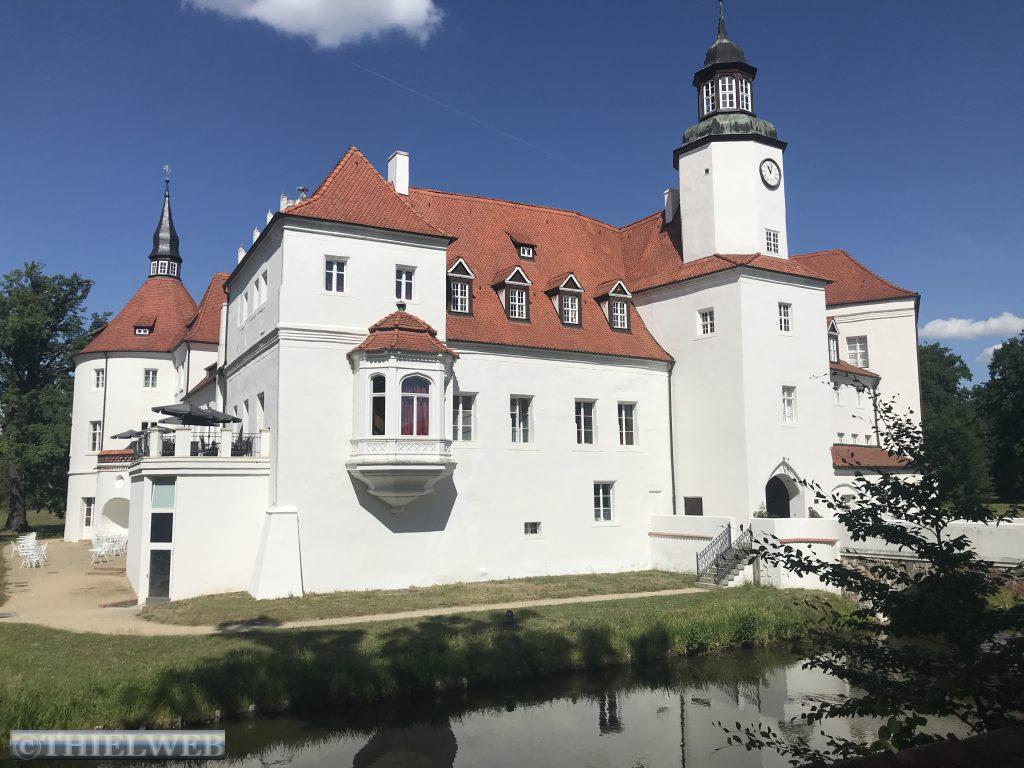 Auf dem Fürst-Pückler-Radweg kommen wir am wunderschönen Wasserschloss Fürstlich Drehna, was heute als Hotel dient, vorbei. Wir passieren direkt am Ufer den Schlabsdorfer See bevor wir wieder Luckau erreichen.