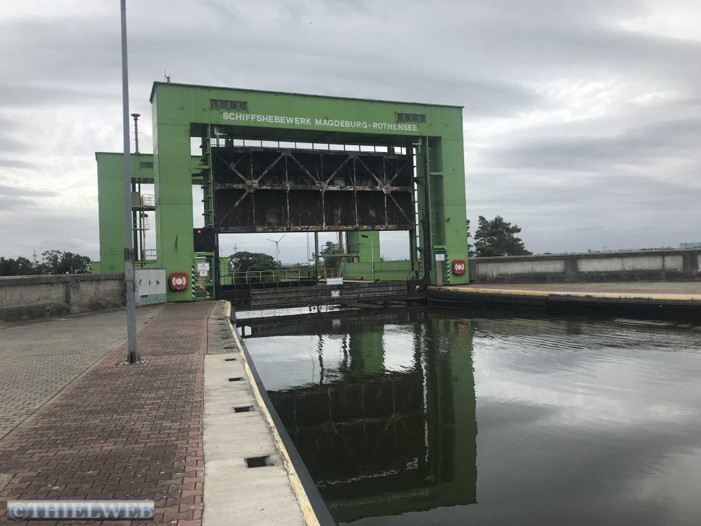 In nördliche Richtung radeln wir heute auf dem Elberadweg bis Burg. Leider ist wegen Dammarbeiten ein Teilstück des Radweges gesperrt, sodass wir die Straße nehmen müssen. Ab Burg entscheiden wir uns für den Radweg am Elbe-Havel-Kanal und machen noch einen kleinen Umweg zum Schiffshebewerk Rothensee, bevor wir auf demselben Weg nach Magdeburg zurückkehren.