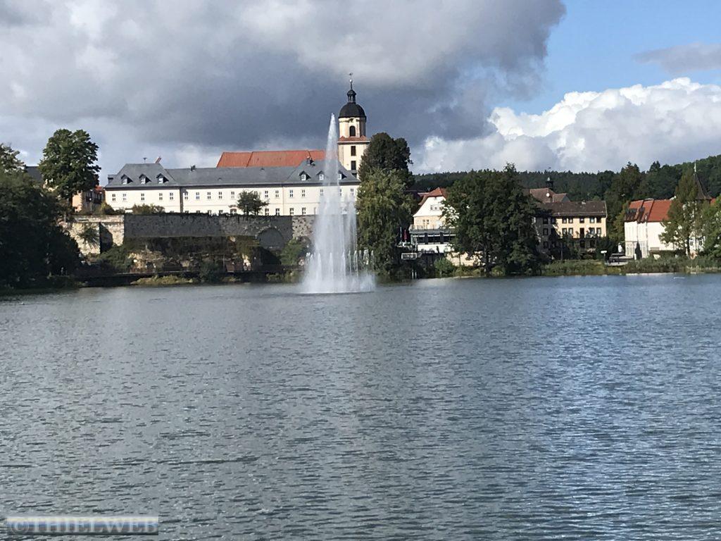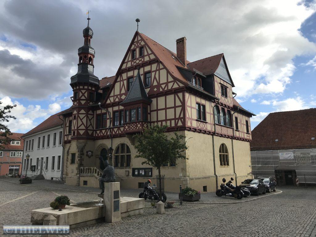 Immerhin ist der Nebel heute nicht da, nur Schleierwolken verhindern, dass die Sonne durchkommt. Bei 8° C starten wir zu unsere Radtour auf dem Werratal-Radweg Richtung Süden. Zunächst begleitet der Radweg die Werra, doch dann sind wir weit weg vom Fluss und heute haben wir starken Gegenwind. Gegen 12 Uhr erreichen wir Wasungen. Die Innenstadt weist ein paar Fachwerkhäuser auf, doch keine Sitzgelegenheit für unsere Mittagspause. Im nahen Park finden wir eine Bank. Doch da diese im Schatten ist, verweilen wir nicht lange. Eigentlich wollten wir bis Meinigen fahren, doch da wir mal wieder viel Straße fahren müssen und bei dem heutigen Gegenwind, treten wir den Rückweg an.