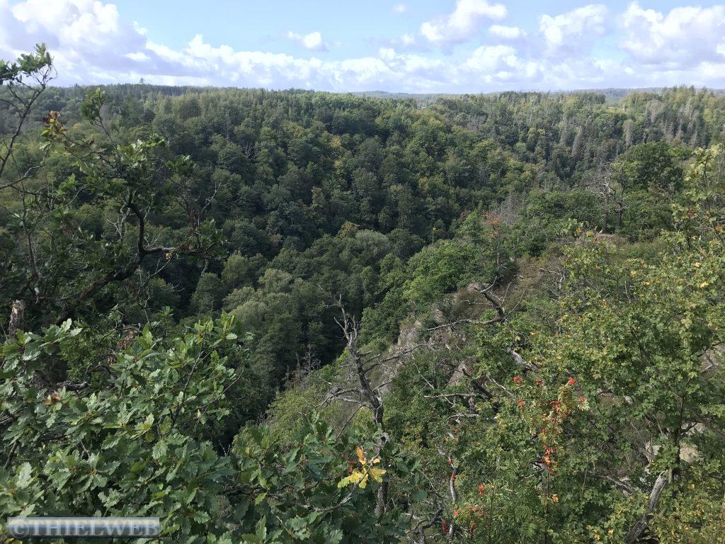 Dicker Nebel verhüllt die Landschaft, 7 °C. Wir warten und gehen zuerst gegenüber zu Kaufland. 10 Uhr, die Wetterlage hat sich nicht geändert. Wir entscheiden uns für eine Wanderung. Doch zuerst schauen wir uns bei Expert die Akkustaubsauger an, ein leistungsstärkerer muss her. Nachdem wir so einige Informationen eingeholt haben, wandern wir zuerst auf dem X5 Richtung Bad Liebenstein. An der Kunstruine wagt sich die Sonne ein wenig durch den Nebel. Auf dem Pummpälzweg entscheiden wir uns, da es schon Mittag ist, um den Hausberg von Bad Salzungen zu wandern. So folgen wir dem schönen Waldweg bis zum Mühlberg und über die Wagnersöhe zum Brandkopf. Mittlerweile hat es die Sonne geschafft, den Nebel zu vertreiben und die Temperaturen sind angenehm. Es folgt der Heckentieg und Dreiherrenstein. Danach können wir entweder auf kurzem Weg zum Wohnmobil zurücklaufen oder über Unterrohn und Leimbach noch einen kleinen Umweg machen. Wir entscheiden und für die letztere Variante.