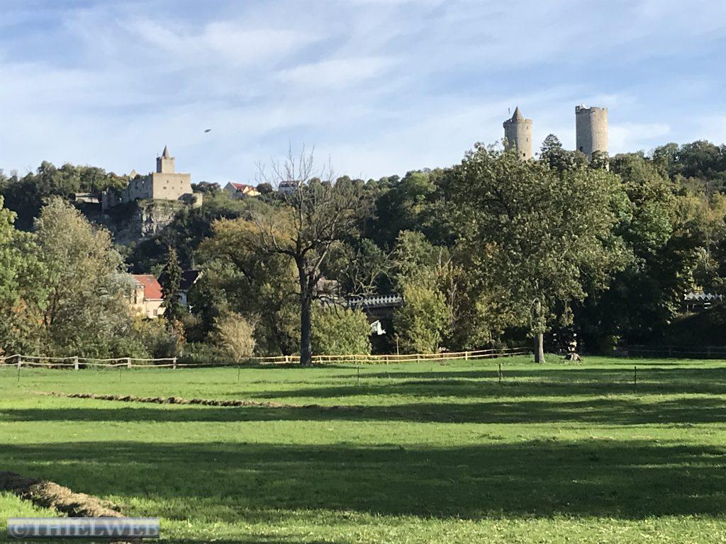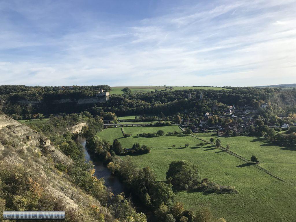 Wir holen unser Wohnmobil in Buttstädt und fahren nach Saaleck. Der Stellplatz ist direkt an der Saale mit Blick auf Burg Saaleck und weiter hinten die Rudelsburg. Zuerst nutzen wir das herrlich warme Wetter, um unseren Teppich noch fertig zu verlegen. Danach unternehmen wir eine kurze Wanderung zum Himmelreich hinauf und über Lengefeld zurück.