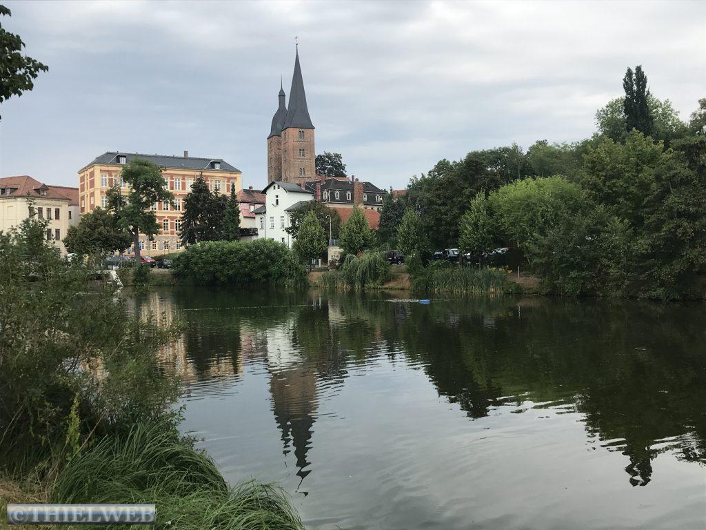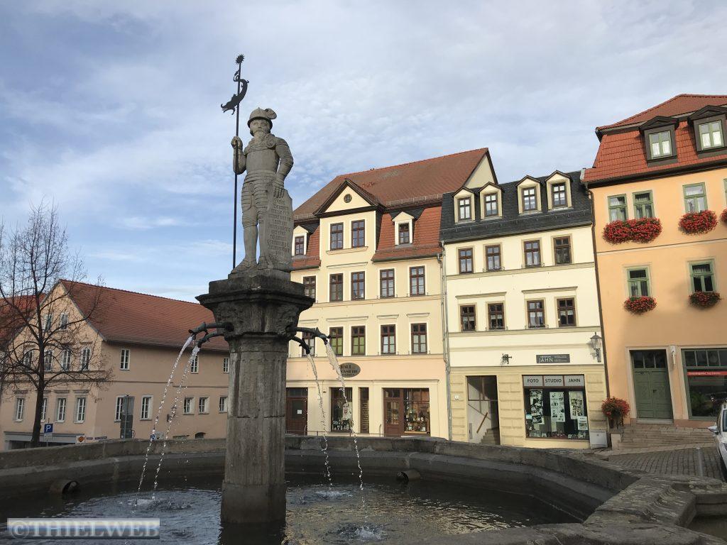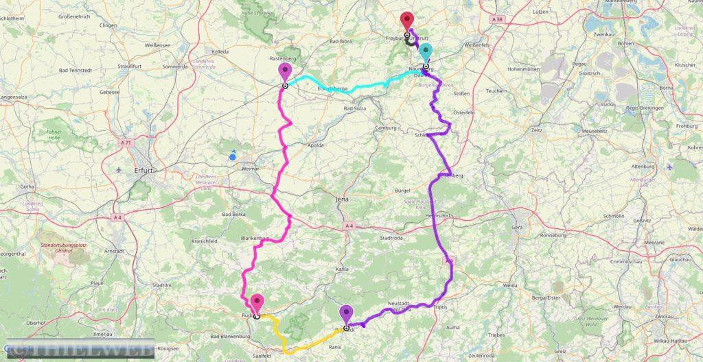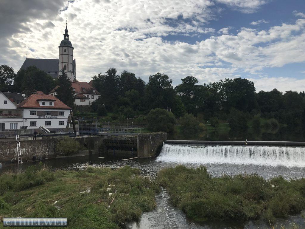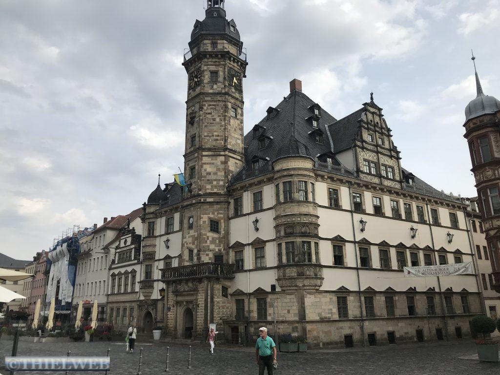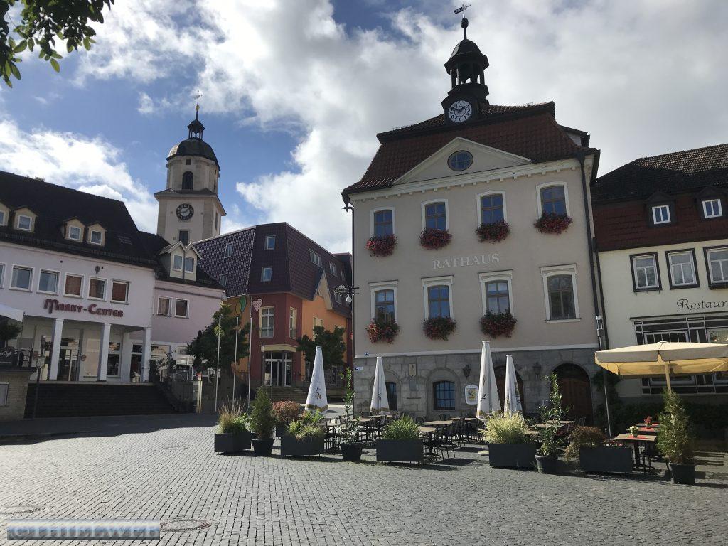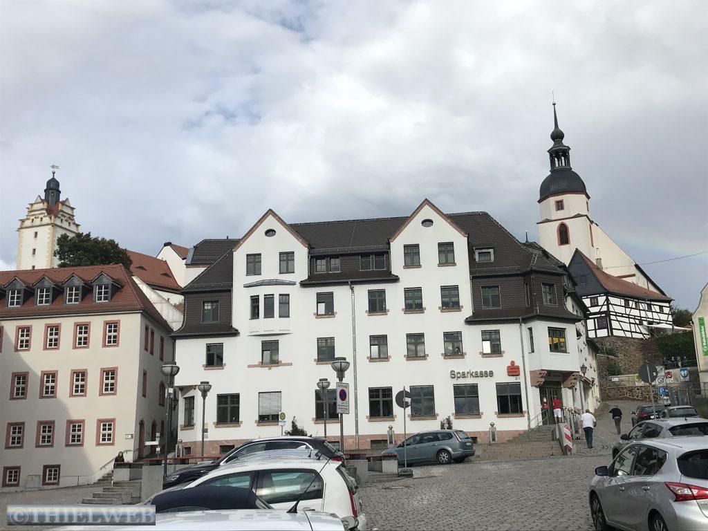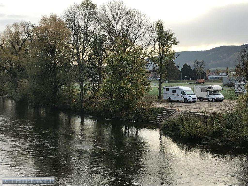 Wir verlassen Freyburg und erledigen in Naumburg noch ein paar Einkäufe. In Oppburg befindet sich ein sehr schöner Stellplatz mit Ver- und Entsorgung und sogar einemI Grillplatz. Wir nutzen diesen Platz für die Entsorgung und eine Mittagspause. Anschließend fahren wir nach Pößneck, da von hier unsere geplante Wanderung für morgen beginnt. Bei einem kurzen Spaziergang durch die Stadt schauen wir uns das Rathaus sowie den Weißen Turm, die Überreste des Pulverturm und die Reste des Glockenturmes an der Stadtbefestigung an.