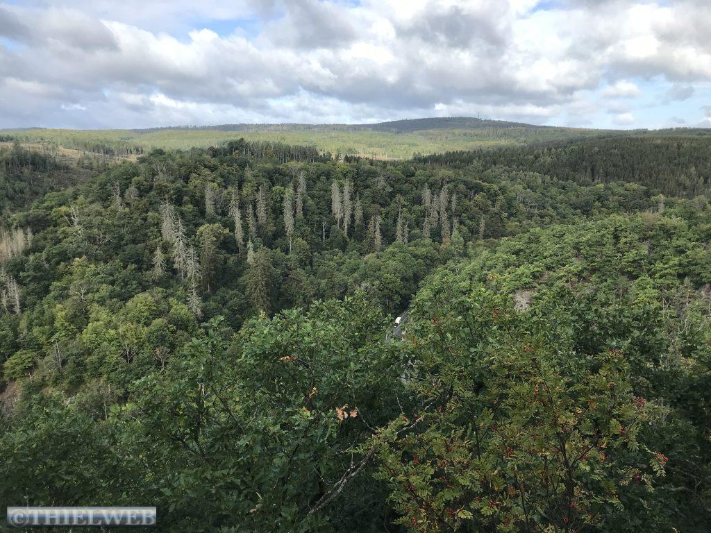 Am Morgen steigen wir hinauf zur Heidecksburg. Vom Aussichtspunkt am Westflügel haben wir einen schönen Blick auf Rudolstadt und das Saaletal. Der Erlebnispfad Hain führt über naturnahe Waldwege und hügeliges Gelände weiter auf den Roten Berg. Durch das canyonartige Kerbtal des Mörlagrabens, welches sich in der letzten Eiszeit mit einer Länge von 660 m und zwischen 30 und 10 m tief eingeschnitten hat, gelangen wir zurück zum Markt von Rudolstadt. Wir wechseln auf die andere Seite der Saale und gehen bergauf zur Schillerhöhe. Vom Mühlberg wandern wir nun weiter bis zum Marienturm wo wir wieder einen schönen Blick genießen können. Ein schmaler Serpentinpfad bringt uns zurück zu unserem Stellplatz.