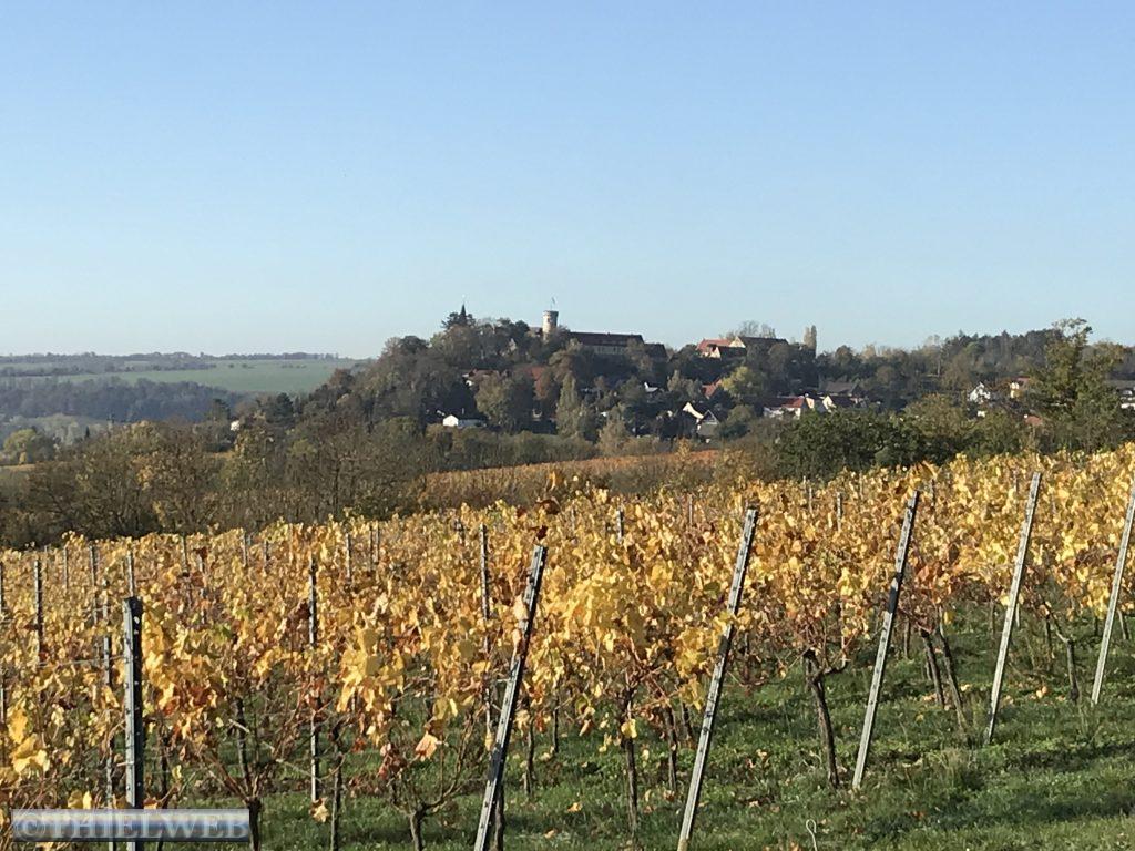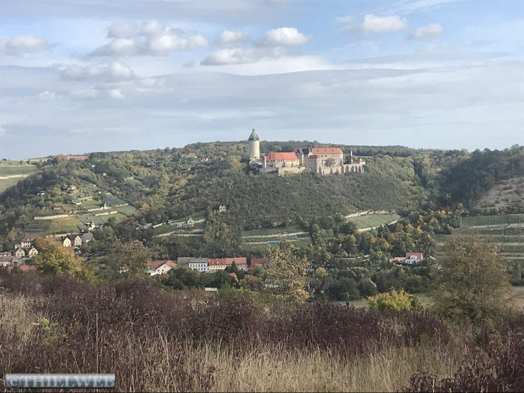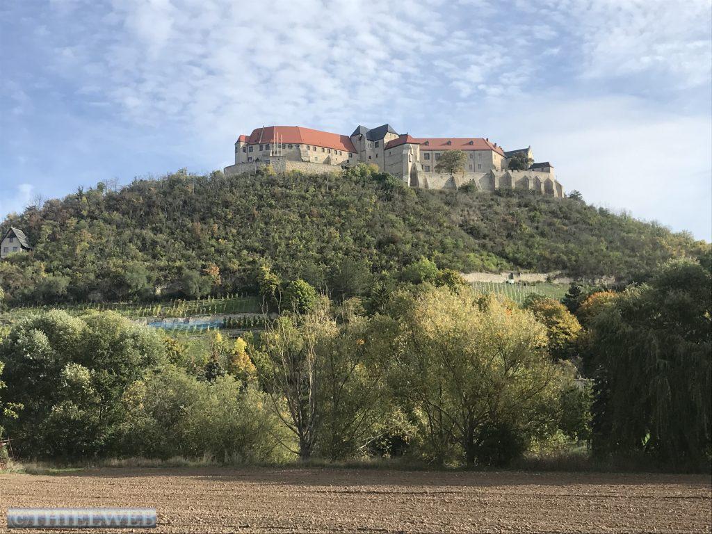 Am Vormittag wird bei der Firma Rossol unser kleines Missgeschick repariert. Im Anschluss fahren wir nach Freyburg. Seit unserem letzten Besuch haben sich die Weinreben in ein buntes Kleid gehüllt. Wir steigen noch einmal zum Schloss Neuenburg hinauf und wandern von hier aus auf dem Klein-Friedenthal-Rundweg.