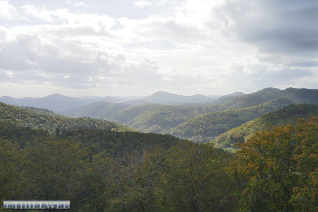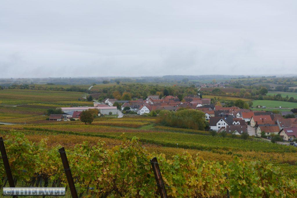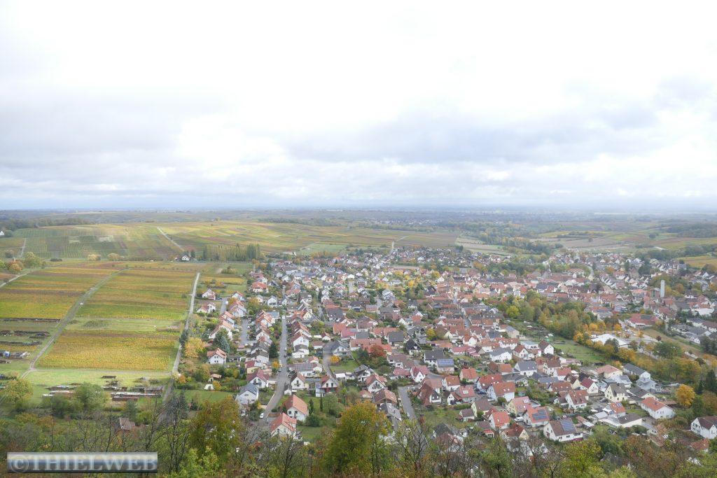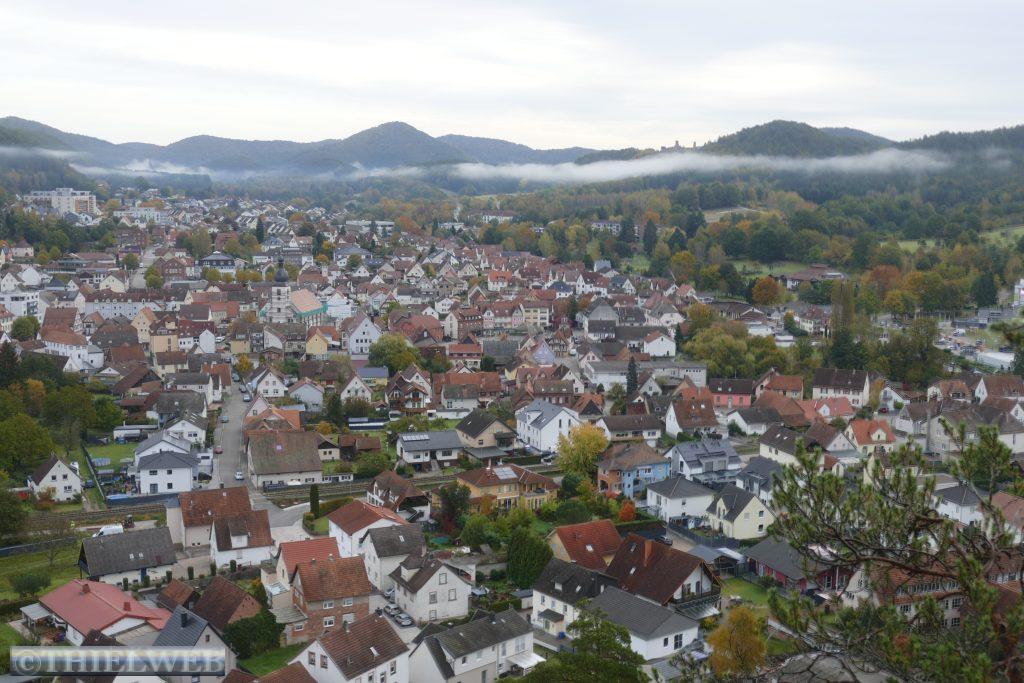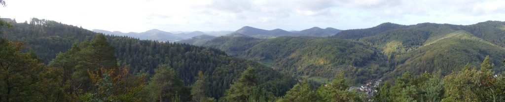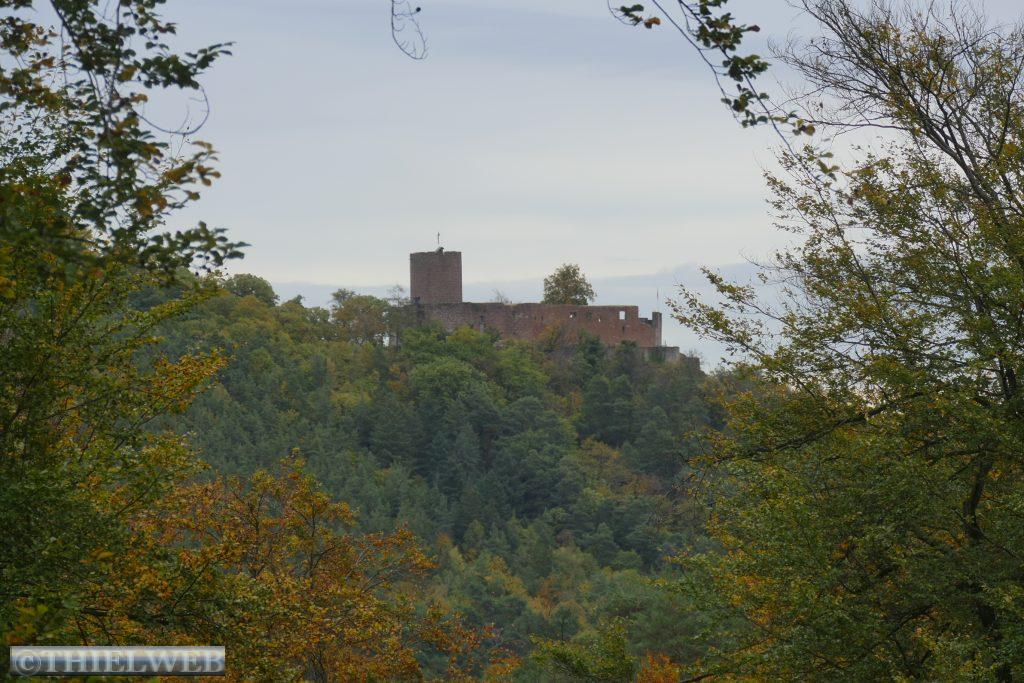 Die ganze Nacht hat es geregnet. Gegen 9 Uhr stellt sich eine leichte Wetterbesserung ein. Wir wandern zur Burg Landeck hinauf. Von hier haben wir einen schönen Blick auf Klingenmünster. Stetig bergauf und bergab kommen wir zu einem Aussichtspunkt mit Blick auf die Madenburg. Auf dem Treutelskopf steht der Martinsturm von dem man bei guter Fernsicht über die Rheinebene zum Schwarzwald, Odenwald, Pfälzerwald sehen kann. Leider beschert uns das Wetter heute keine Fernsicht. Auf guten Wanderwegen geht es auf dem Rundweg wieder zur Burg Landeck. Im Anschluss machen wir uns auf dem Rückweg und fahren bis zum Stellplatz in Messel.