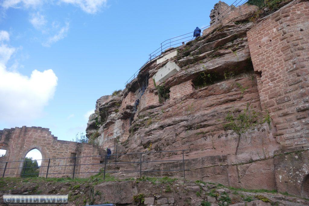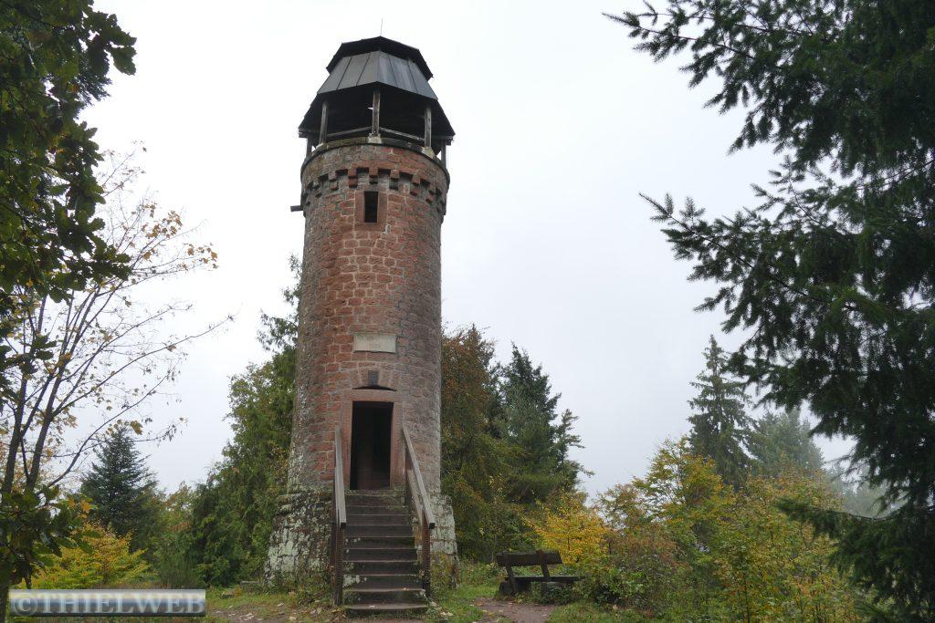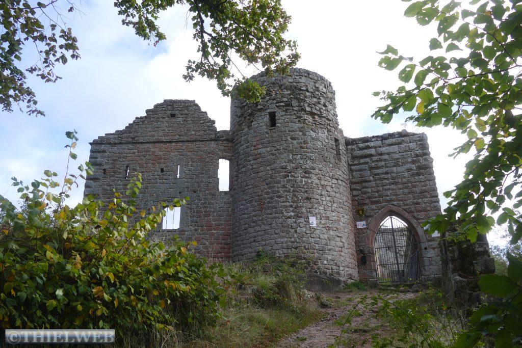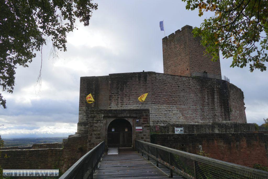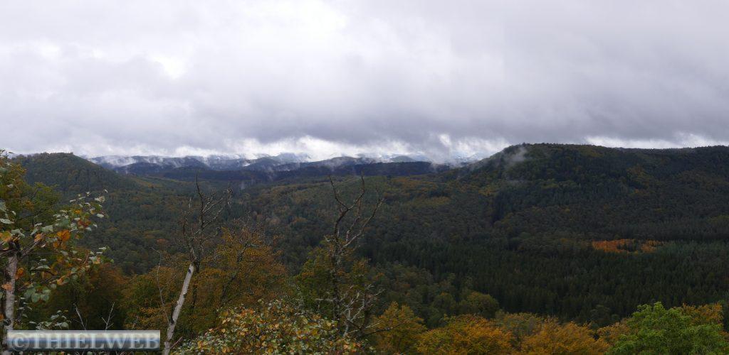 Die ganze Nacht hat es geregnet. Gegen 9 Uhr stellt sich eine leichte Wetterbesserung ein. Wir wandern zur Burg Landeck hinauf. Von hier haben wir einen schönen Blick auf Klingenmünster. Stetig bergauf und bergab kommen wir zu einem Aussichtspunkt mit Blick auf die Madenburg. Auf dem Treutelskopf steht der Martinsturm von dem man bei guter Fernsicht über die Rheinebene zum Schwarzwald, Odenwald, Pfälzerwald sehen kann. Leider beschert uns das Wetter heute keine Fernsicht. Auf guten Wanderwegen geht es auf dem Rundweg wieder zur Burg Landeck. Im Anschluss machen wir uns auf dem Rückweg und fahren bis zum Stellplatz in Messel.