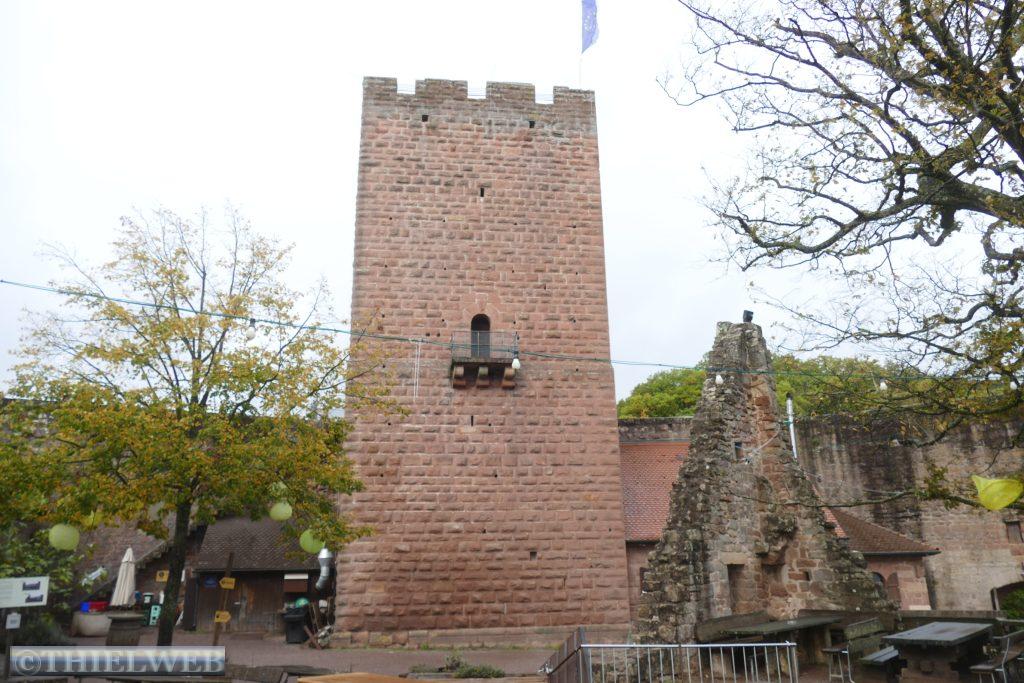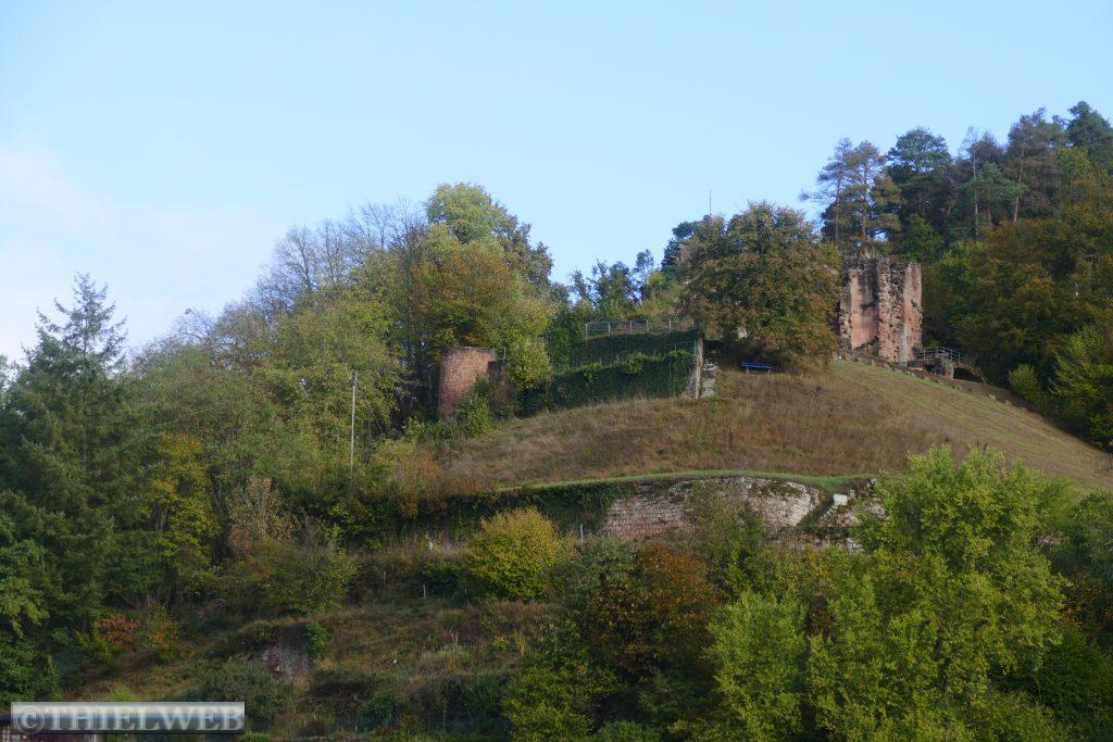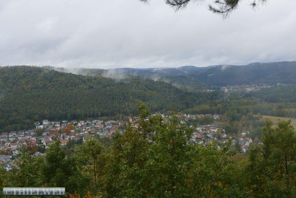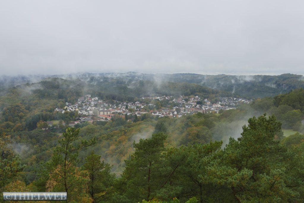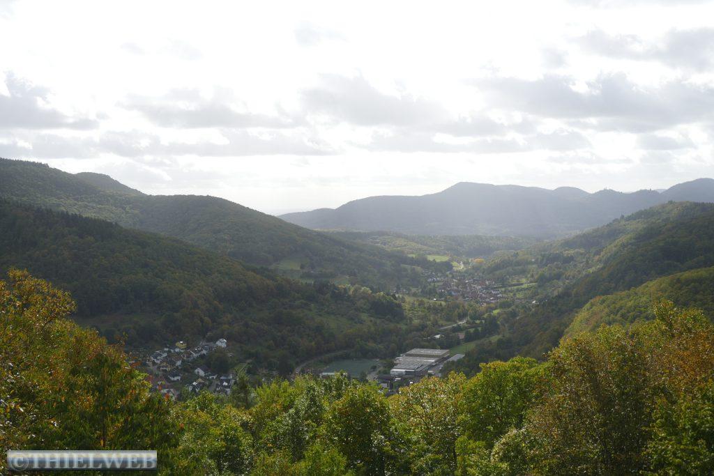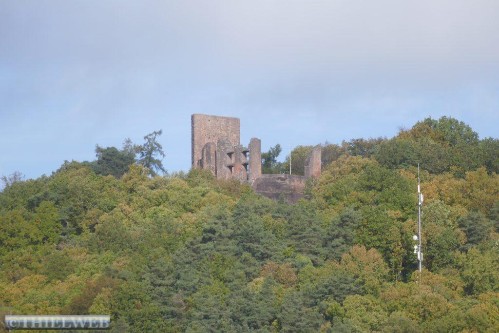 Die ganze Nacht hat es geregnet. Gegen 9 Uhr stellt sich eine leichte Wetterbesserung ein. Wir wandern zur Burg Landeck hinauf. Von hier haben wir einen schönen Blick auf Klingenmünster. Stetig bergauf und bergab kommen wir zu einem Aussichtspunkt mit Blick auf die Madenburg. Auf dem Treutelskopf steht der Martinsturm von dem man bei guter Fernsicht über die Rheinebene zum Schwarzwald, Odenwald, Pfälzerwald sehen kann. Leider beschert uns das Wetter heute keine Fernsicht. Auf guten Wanderwegen geht es auf dem Rundweg wieder zur Burg Landeck. Im Anschluss machen wir uns auf dem Rückweg und fahren bis zum Stellplatz in Messel.