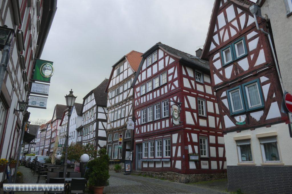 Heute fahren wir endlich wieder los. Nachdem wir uns im Arnstadt noch über den Einbau einer Trenntoilette informiert haben, fahren wir weiter bis Lich in der Nähe von Gießen. Unterwegs tanken wir noch und suchen vergeblich eine Tankstelle, an der wir AdBlue an der Zapfsäule auffüllen können. Mittlerweile ist es viertel nach fünf und eine dicke Wolke beschert uns einen Regenguss. So essen wir erst zu Abend. Dann kommt die Sonne noch einmal hervor und lockt uns zu einem Spaziergang durch die Fachwerkstatt mit ihren krummen und schiefen Häusern. Markant ist auch der ehemalige Festungsturm mit Verlies aus dem 17. Jahrhundert.