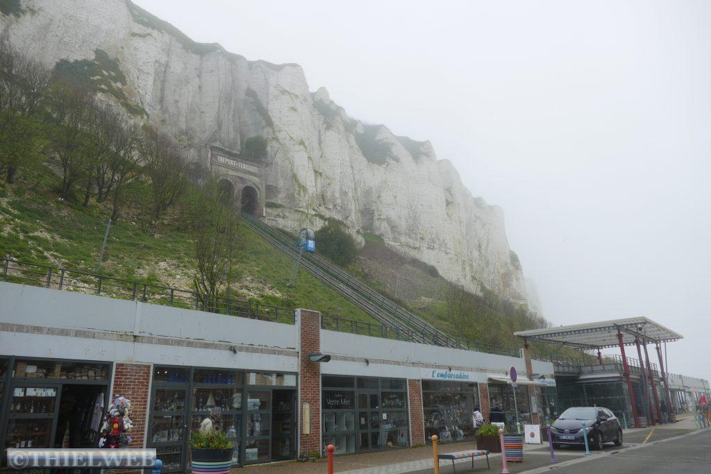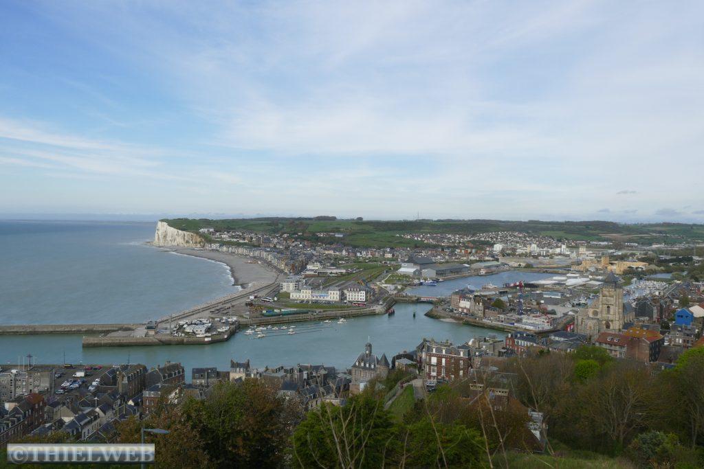 Dominiert wird die Stadt von der Abteikirche Saint-Etienne und dem Benediktinerpalast. Von Leuchtturm aus haben wir einen schönen Blick auf die imposanten Kreidefelsen der Alabasterküste. Das Kap Fagnet ist mit 110 Meter Höhe der höchste Punkt der Alabasterküste direkt oberhalb der Hafeneinfahrt.