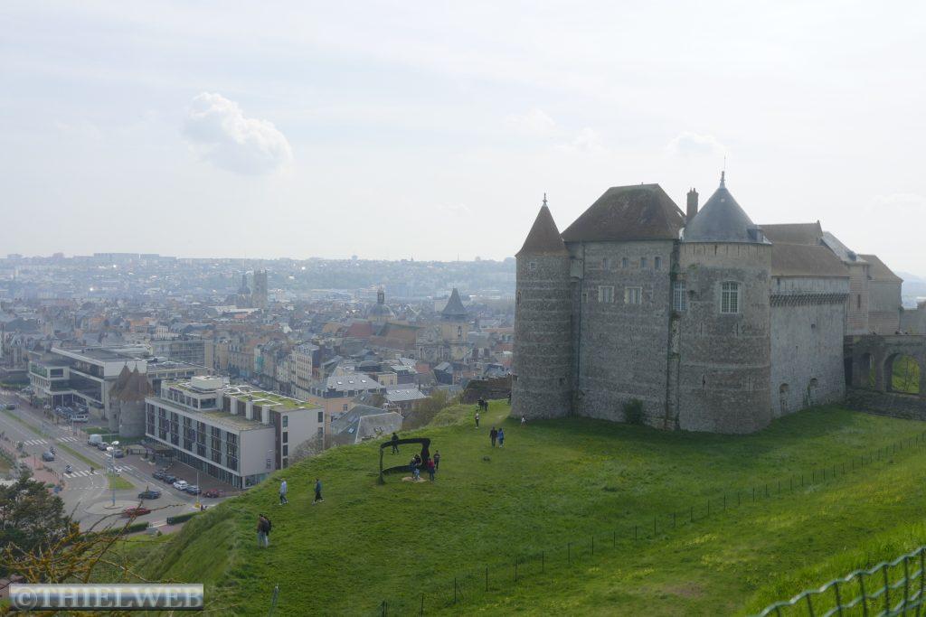 Eines der berühmtesten Badeorte im Departement Seine-Maritim ist Dippe. Nach dem Besuch der Touristeninformation gehen wir zur Kirche Saint-Jacques. Anschließend laufen wir durch die Stadt zur Strandpromenade. Hoch oben erblicken wir die alte Burg, die jetzt ein Museum beherbergt. Von oben schauen wir auf Dippe und gehen wieder zum Hafen, um uns die Drehbrücke anzuschauen. Leider kommt gerade kein Schiff, um sie in Aktion zu sehen. Wir setzen unsere Fahrt nach Fecamp fort.