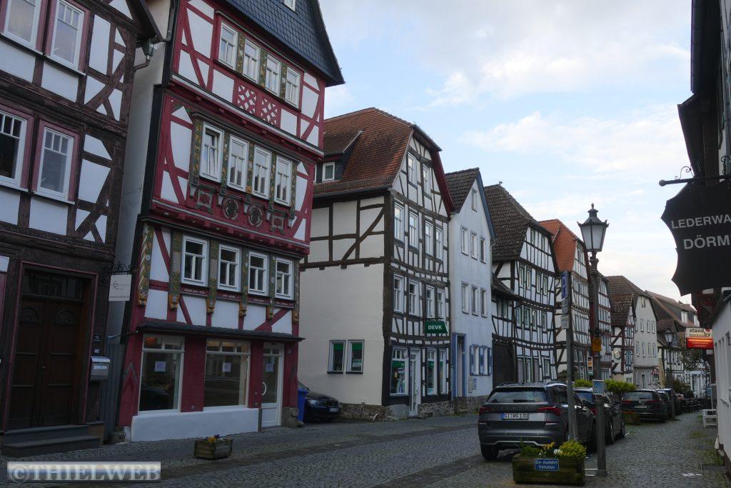 Heute fahren wir endlich wieder los. Nachdem wir uns im Arnstadt noch über den Einbau einer Trenntoilette informiert haben, fahren wir weiter bis Lich in der Nähe von Gießen. Unterwegs tanken wir noch und suchen vergeblich eine Tankstelle, an der wir AdBlue an der Zapfsäule auffüllen können. Mittlerweile ist es viertel nach fünf und eine dicke Wolke beschert uns einen Regenguss. So essen wir erst zu Abend. Dann kommt die Sonne noch einmal hervor und lockt uns zu einem Spaziergang durch die Fachwerkstatt mit ihren krummen und schiefen Häusern. Markant ist auch der ehemalige Festungsturm mit Verlies aus dem 17. Jahrhundert.