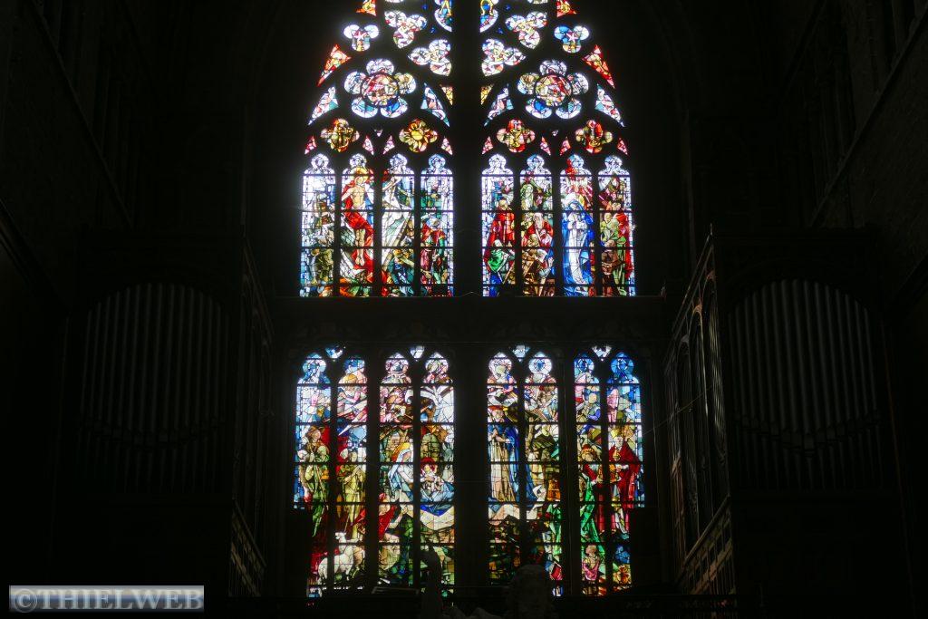 Nachdem wir Adblue tanken konnten, starteten wir zum Versuch, den 3/32 Zoll Inbusschlüssel für unseren Lüfter zu kaufen. Leider erfolglos. Wir setzen die Fahrt Richtung Belgien fort und tanken noch einmal recht günstig kurz vor Aachen. Am Nachmittag erreichen wir Liege und müssen unseren gewählten Stellplatz am Krankenhaus etwas suchen. Als wir uns die Stadt anschauen wollen, wissen wir noch nicht, dass wir uns bereits auf dem Montagne de Bueren befinden. Der Weg führt uns an der Zitadelle, einer der früher strategisch wichtigsten Punkte Belgiens, vorbei zu den 374 Stufen hinunter in die Altstadt. Zuerst schauen wir uns die Kathedrale mit Ihren wunderschönen farbigen Fenstern und dem Kreuzgang an. Durch die Geschäftsstraßen laufen wir in den älteren Teil der Stadt. Unterwegs gönnen wir uns eine der Waffeln, für die Belgien bekannt ist. Die Lütticher Waffeln werden im Unterschied zu den Brüsseler Waffeln, die aus einem Rührteig hergestellt werden, aus einem dicken Hefeteig gemacht. In diesem Teig werden Zuckerstückchen eingeknetet, die dann beim Backen karamellisieren. Nach dieser Leckerei steigen wir wieder hinauf auf den Montagne de Bueren und genießen noch einmal die Aussicht auf Liege.