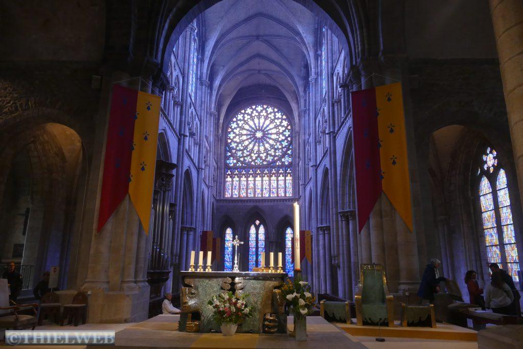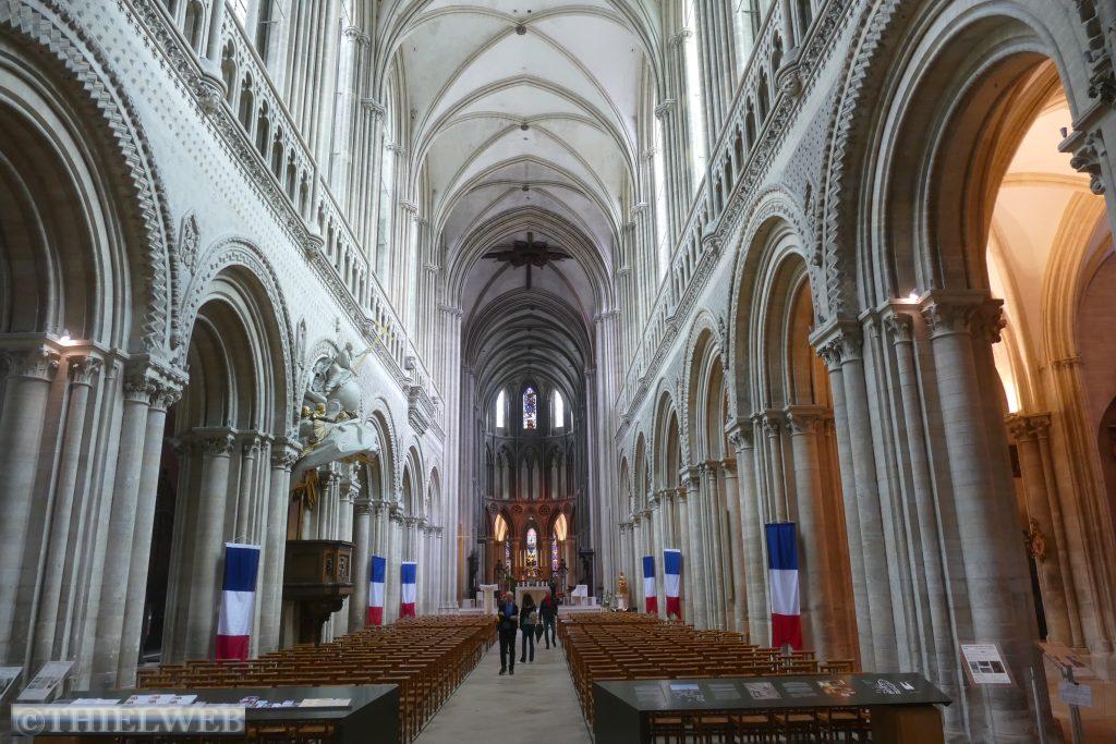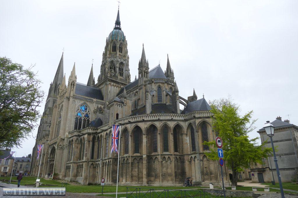 Bayeux gehört zu den wenigen Städten, die von den Bombenangriffen im 2. Weltkrieg verschont geblieben sind. Die romanische und gotische Kathedrale Notre-Dame aus dem 11. Jahrhundert gehört zu den schönsten Kathedralen in Frankreich. Verschiedene Stile aus drei Jahrhunderten sind hier vermischt. Sie wurde 1077 im Beisein von Wilhelm dem Eroberer und seiner Gemahlin Mathilde eingeweiht. Wir machen noch einen kleinen Umweg über den britischen Soldatenfriedhof, wo über 4000 Soldaten aus dem Commonwealth ihre letzte Ruhestätte gefunden haben.