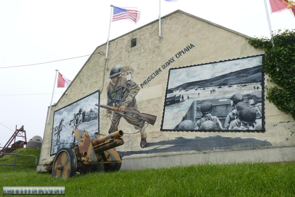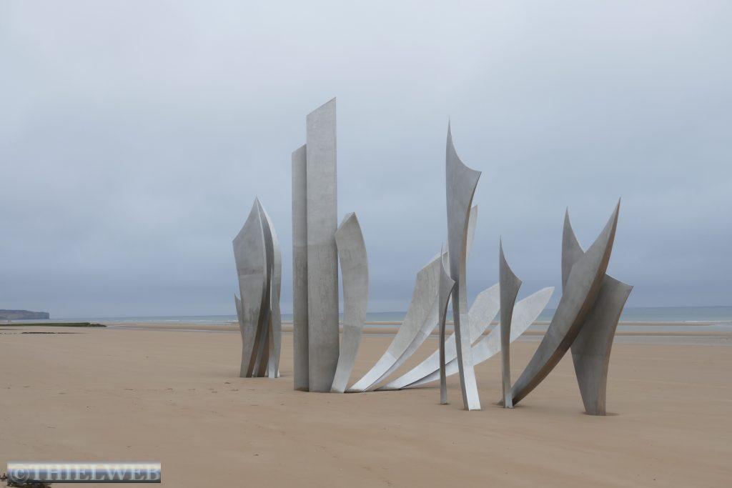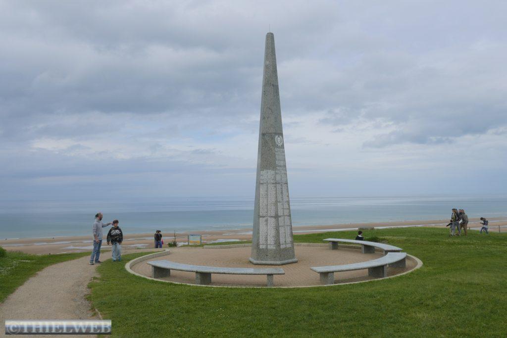 Weiter fahren wir an die Omaha Beach. Auf der Suche nach einem Platz für die Übernachtung fahren wir zuerst das Overlord Museum an, wo wir uns Informationen zur Omaha Beach einholen und finden nach etwas suchen zu einem kleinen Parkplatz in Saint-Laurent-sur-Mer, gleich hinter der Düne am Charles Shay Indianerdenkmal. Als der Regen nachlässt, laufen wir am riesig breiten Sandstrand entlang in Richtung des amerikanischen Friedhofes. Leider ist diese schon geschlossen. So kehren wir am Memorial 1. US-Infanteriedivision wieder um.