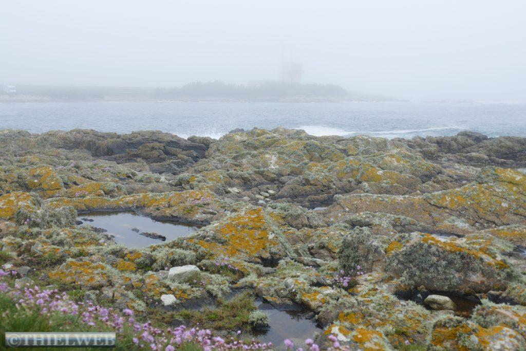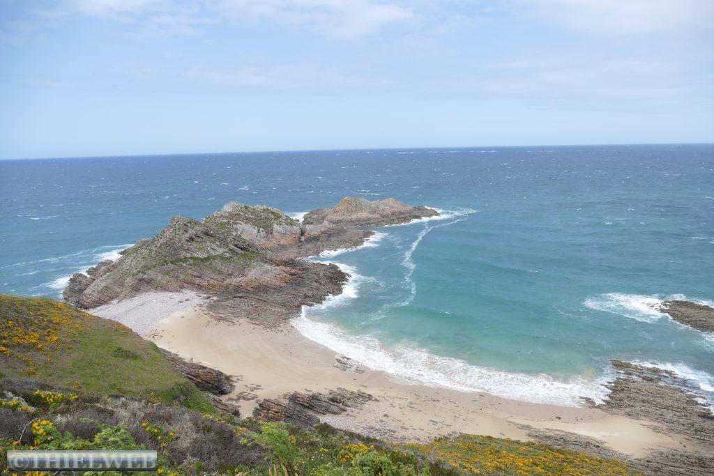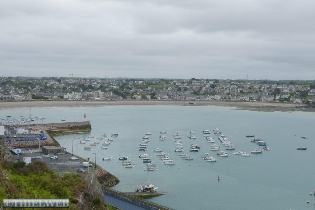 Am Morgen regnet es mal wieder. Wir lassen uns Zeit bevor wir zum Cap Fréhel an der Smaragdküste fahren. Als wir am Leuchtturm sind, weht ein straffer Wind und rüttelt uns durch. Heute wird wohl aus der Wanderung nichts. Wir fahren zurück nach Frehel und besorgen uns Informationsmaterial im Fremdenverkehrsamt. Dabei bekommen wir den Tipp zu einer zweistündigen Wanderung am Cap d´Erquy. Da es sich mittlerweile aufgelockert hat, fahren wir zum Cap und wandern los. Im Fischereihafen von Erquy liegen etliche Boote. Von Oktober bis März graben Fischer in der Bucht Baie de Saint-Brieuc die Jakobsmuscheln aus dem Meeresboden, was nur an zwei Werktagen pro Woche während 45 Minuten erlaubt ist. Vom Hafen kommen wir an zwei kleinen Teichen vorbei. Der stärker gewordene Wind fegt uns bei unserer Wanderung fast von den Klippen, doch dafür werden wir mit blauen Himmel und Sonnenschein belohnt. Ginster blüht an den Hängen der Küste und in der Ferne erblicken wir den Leuchtturm von Cap Fréhel.