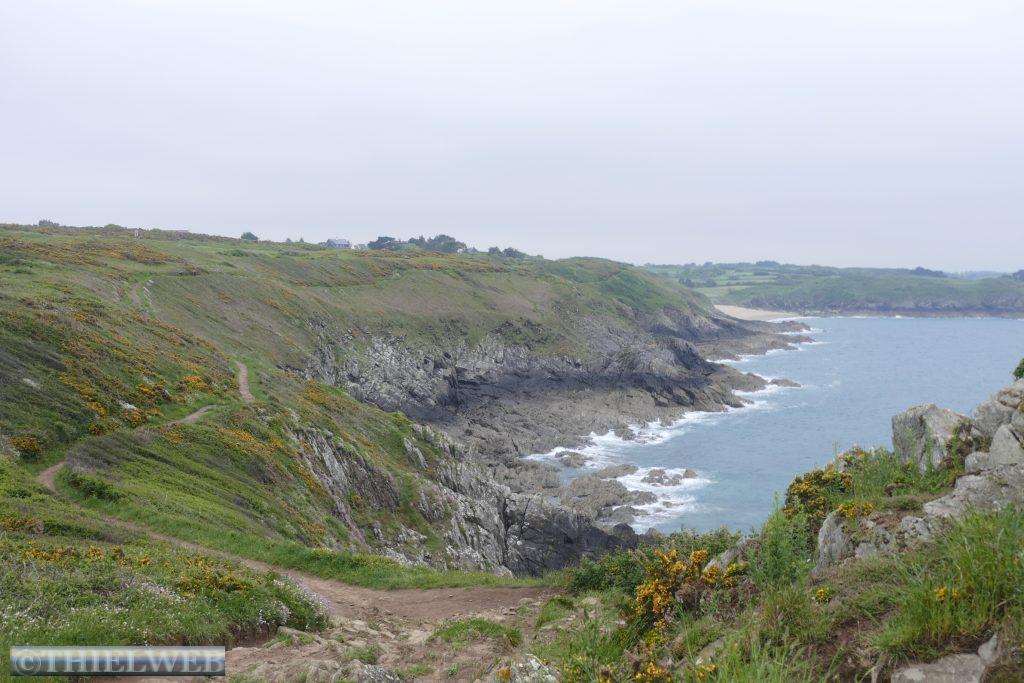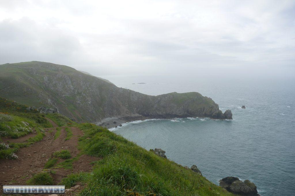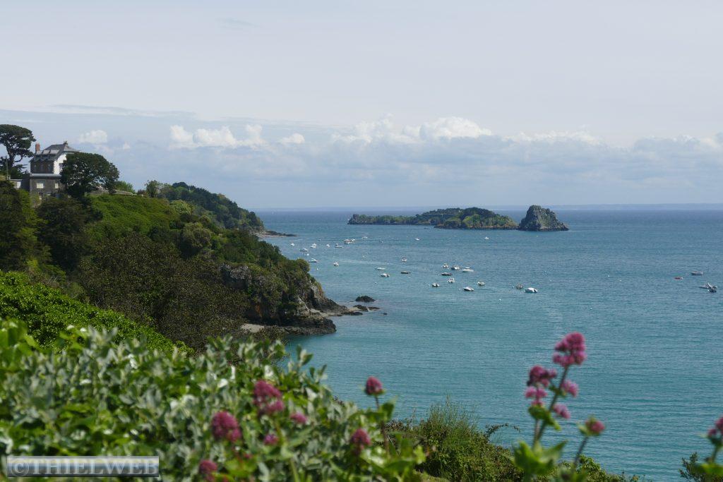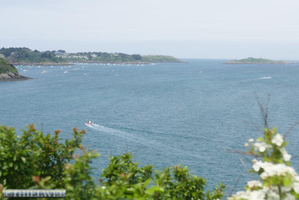 Der Zöllnerpfad, auf dem wir anschließend ein Stück wandern, bietet ein zauberhaftes Panorama der bretonischen Smaragdküste. Vom Pointe du Hock aus fällt der Blick über kleine Felsbuchten und Ankerplätze. Da unsere Internetverbindung heute schwächelt, wissen wir nicht, wie weit wir bereits gelaufen sind. Wir fragen Entgegenkommende und befinden uns bereits am Pointe de la Chaine mit Blick auf die Pointe du Grouin, von wo aus wir wieder zurücklaufen.