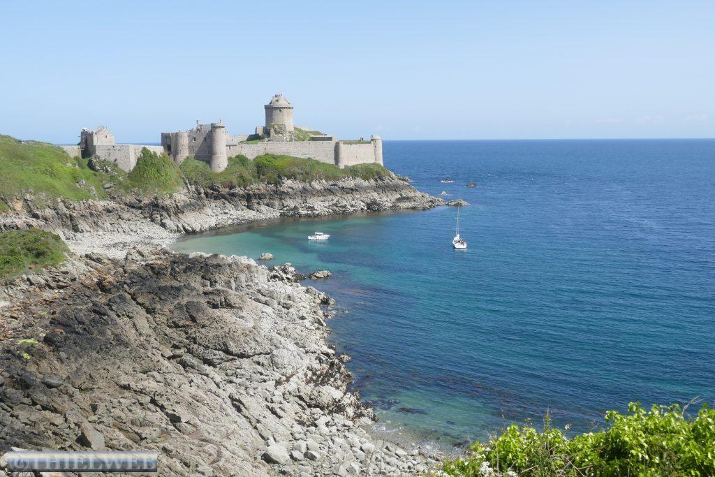 Nach so viel Kultur fahren wir weiter Richtung Brest und geben unterwegs noch unsere mittlerweile leere französische Gasflasche wieder ab. Ziel ist heute Plougonvelin, nicht weit von der Pointe Saint Mathieu entfernt. Wir besorgen uns im Touristenbüro wieder Informationsmaterial. Dann nehmen wir den GR 34 für unseren Rückweg entlang der Aberküste. Dabei kommen wir am Fort de Bertheaume vorbei. Die Festung steht auf einer kleinen, felsigen Insel und ist nur durch eine Brücke mit dem Festland verbunden.