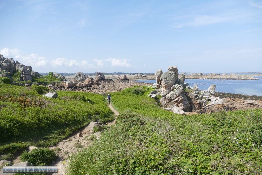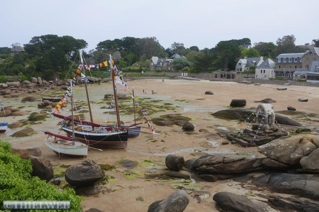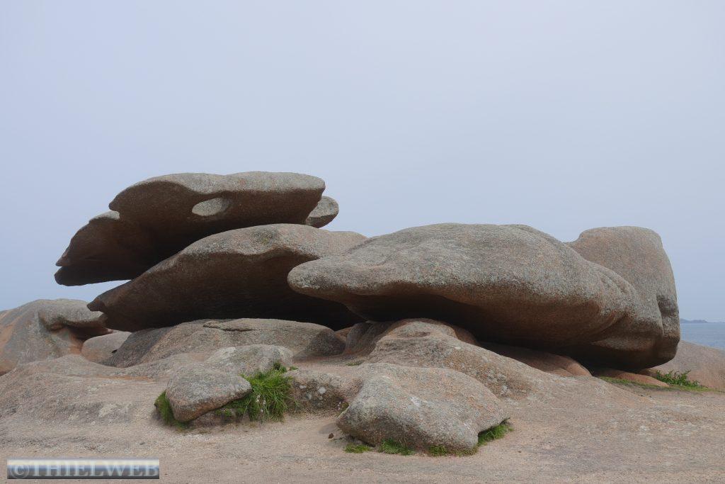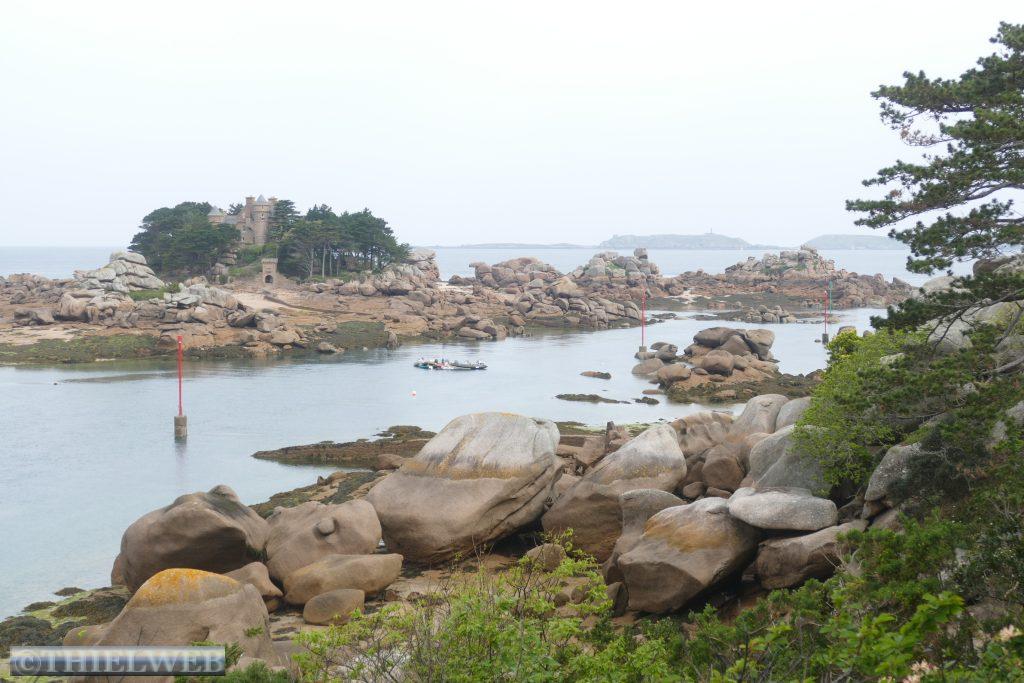 Das Fischerdorf, Ploumanac´h ist heute einer der beliebtesten Ferienorte der rosa Granitküste. Wir parken direkt am Skulpturenpark und beginnen unsere Wanderung auf dem GR 34. Über 300 Millionen Jahre alte rosafarbene Granitkolosse befinden sich entlang der Küste zwischen Ploumanac’h und Trégastel. Wir kommen am Leuchtturm von Meen Ruz vorbei mit Blick auf die Insel-Gruppe der Sept-Iles und erreichen die Plage de Saint-Guirec. Aus Wales in einem Steintrog kommend, soll Saint-Guirec hier angekommen sein, um die Bretagne zu christianisieren. Eine kleine Gebetskapelle wurde im 13. Jahrhundert an der Stelle seiner Ankunft erbaut, die nur bei Ebbe zu erreichen ist. Dann erblicken wir die Île de Costaérès mit dem markanten Schloss Chateau de Costaérès, bevor wir entlang der Straße zurück zum Parkplatz gehen und weiter nach Pleumeur-Bodou unserem Stellplatz für die Nacht fahren. Bei der Anfahrt sehen wir die große 50 m hohe und 64 m breite Kugel le Radome, die eine Hornantenne beherbergt. Diese empfing am 11. Juli 1962 die ersten Fernsehbilder aus den USA und ist die Einzige ihrer Art, da ihr amerikanisches Binom nicht mehr existiert.