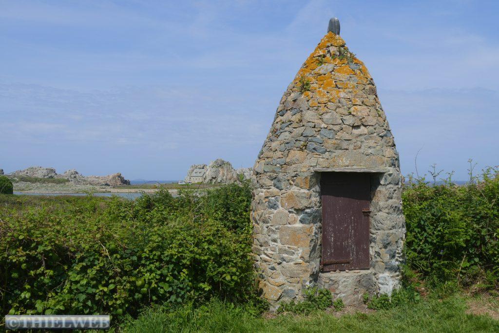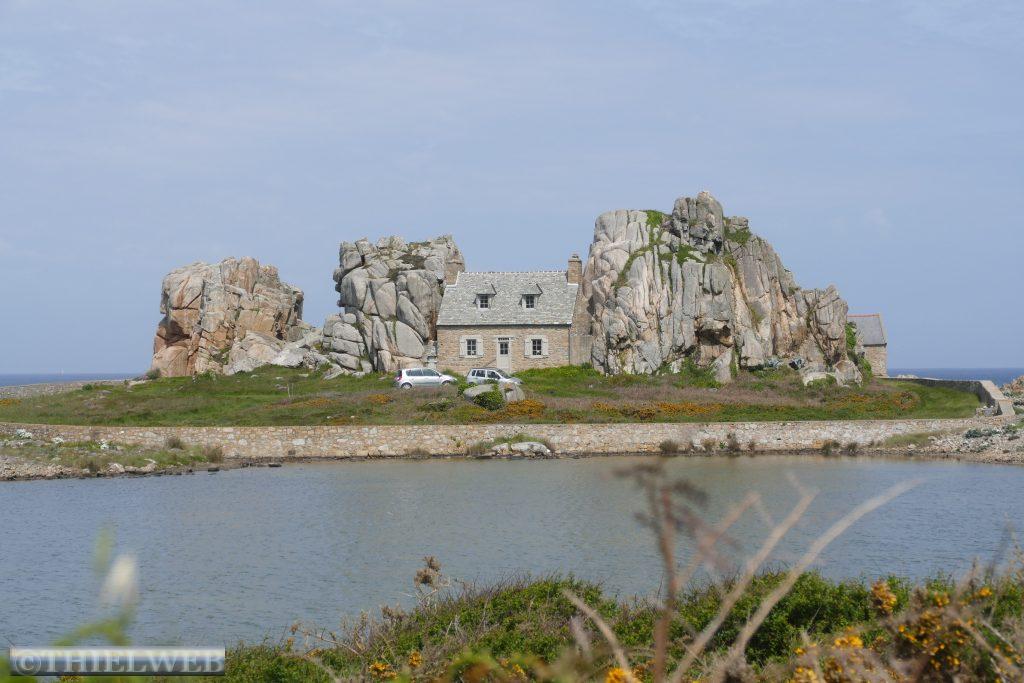 Heute steht das Postkartenmotiv auf dem Programm. Wir fahren auf die Halbinsel Plougrescant und wandern durch ein Mosaik aus Feldern, Heideland und Gehölzen. Die ganze Küste ist mit fantastischen Gesteinsformen übersät. Höhepunkt ist La Maison du Gouffre zu Deutsch das Schlund-Haus. Das kleine Wohnhaus, steht eingeklemmt zwischen zwei riesigen, zerklüfteten Felsen. Im Dorf Plougrescant steht die Kapelle Saint-Gonéry mit seltsam geneigter Bleispitze.