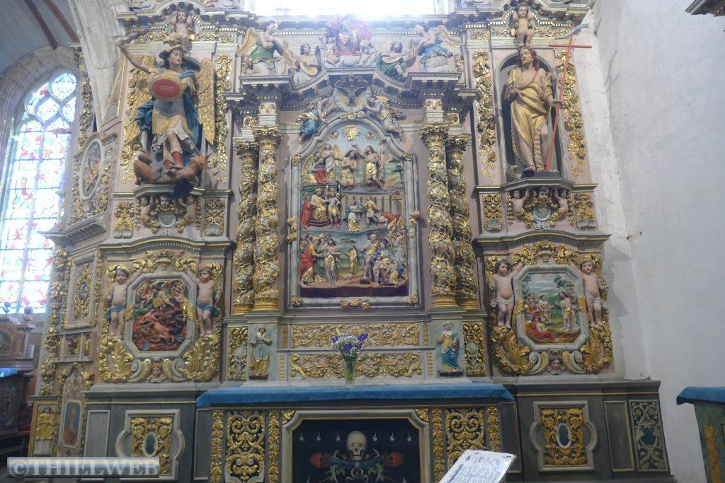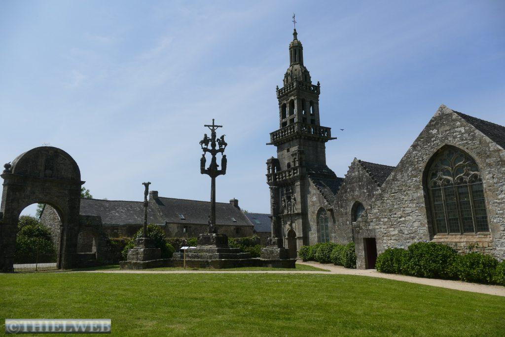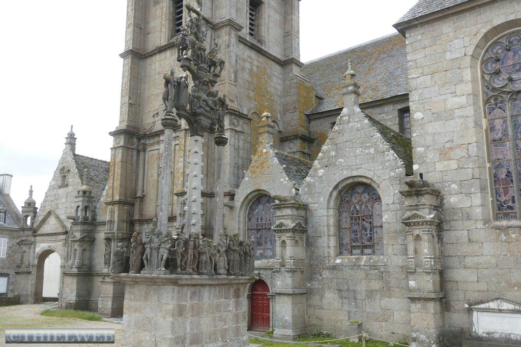 Wir schauen uns heute unterwegs noch zwei weitere Umfriedete Pfarrbezirke an. Die Pfarrkirche von Guimiliau beeindruckt durch Ihren Kalvarienberg, der zwischen 1581 und 1588 erbaut wurde und etwa zweihundert Figuren auf zwei Ebenen darstellt. Ihre Sakristei ist mit einer bemerkenswerten Rotunde geschmückt und verleiht dem Ort eine architektonische Harmonie.