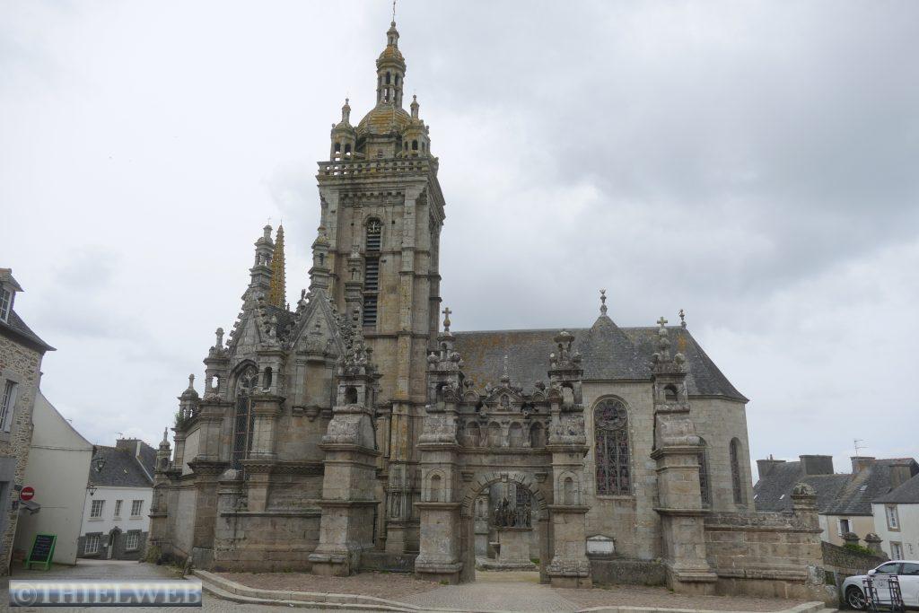 Auf der Weiterfahrt nach Plonévez-Porzay, unserem nächsten Stellplatz mit Entsorgung, halten wir an der Kapelle Sainte-Marie-du Ménez-Horn. Der sehenswerte Pfarrbezirk besteht aus dem Triumphtor, dem Kalvarienberg, Brunnen und der Umfassungsmauer im gleichnamigen Ort. Der Glockenturm, der zwischen 1668 und 1773 erbaut wurde, ist ein Vorbau mit drei Stockwerken und Balustraden, gekrönt von einer Laterne, die denen des Vatikans nachempfunden wurde. Das im Renaissancestil erbaute Kirchenschiff hat auf beiden Seiten Arkaden, die mit Seitenschiffen vergrößert sind.