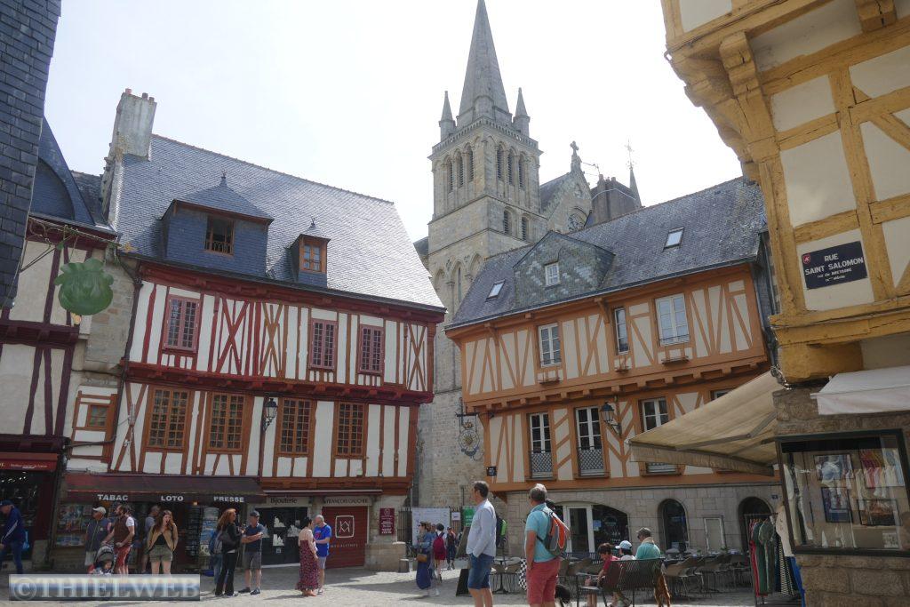 Wir haben auf einen Supermarktplatz in Vannes übernachtet und fahren am Morgen etwas näher in die Innenstadt heran. Vannes hat einen gut erhaltenen Stadtkern rund um den Place Henri IV neben der Cathedrale Saint Pierre. Wir spazieren auf der Garenne-Promenade, einem Weg entlang der Mauern an Gärten und an einem Waschhaus vorbei. Der Hafen zeugt von einer reichen Vergangenheit. Vannes war Residenz der Herzöge der Bretagne und verfügt noch über 171 Holzfachwerkhäuser. Darunter befindet sich das Haus „Vannes und seiner Frau“ mit einer Granitskulptur, die die Leichtigkeit und Gemütlichkeit der ehemaligen Besitzer widerspiegelt, ein beliebtes Fotomotiv. Am Saint-Vincent-Tor befindet sich die Statue von Saint-Vincent-Ferrier, dem Schutzpatron der Stadt, der für seine öffentlichen Predigten berühmt wurde. Nach der Stadtbesichtigung fahren wir weiter auf die Arzon Halbinsel.