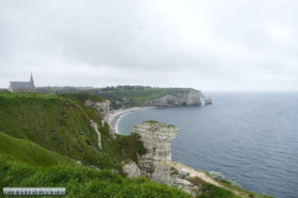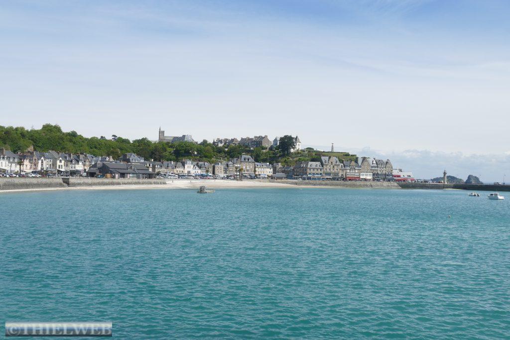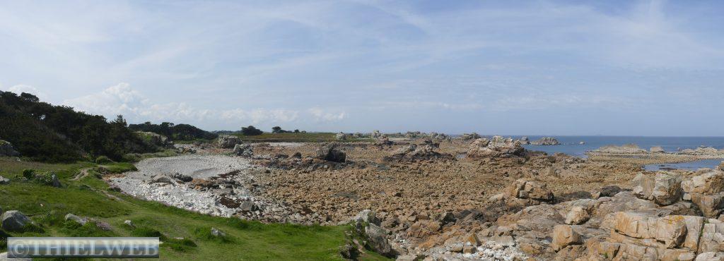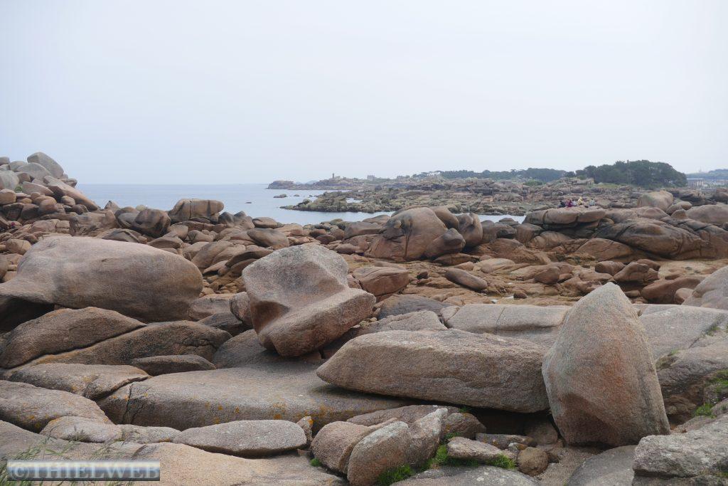Das Fischerdorf, Ploumanac´h ist heute einer der beliebtesten Ferienorte der rosa Granitküste. Wir parken direkt am Skulpturenpark und beginnen unsere Wanderung auf dem GR 34. Über 300 Millionen Jahre alte rosafarbene Granitkolosse befinden sich entlang der Küste zwischen Ploumanac’h und Trégastel. Wir kommen am Leuchtturm von Meen Ruz vorbei mit Blick auf die Insel-Gruppe der Sept-Iles und erreichen die Plage de Saint-Guirec. Aus Wales in einem Steintrog kommend, soll Saint-Guirec hier angekommen sein, um die Bretagne zu christianisieren. Eine kleine Gebetskapelle wurde im 13. Jahrhundert an der Stelle seiner Ankunft erbaut, die nur bei Ebbe zu erreichen ist. Dann erblicken wir die Île de Costaérès mit dem markanten Schloss Chateau de Costaérès, bevor wir entlang der Straße zurück zum Parkplatz gehen und weiter nach Pleumeur-Bodou unserem Stellplatz für die Nacht fahren. Bei der Anfahrt sehen wir die große 50 m hohe und 64 m breite Kugel le Radome, die eine Hornantenne beherbergt. Diese empfing am 11. Juli 1962 die ersten Fernsehbilder aus den USA und ist die Einzige ihrer Art, da ihr amerikanisches Binom nicht mehr existiert.