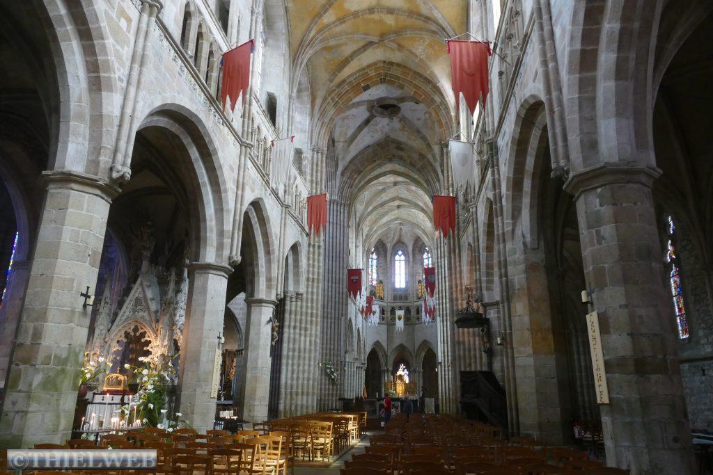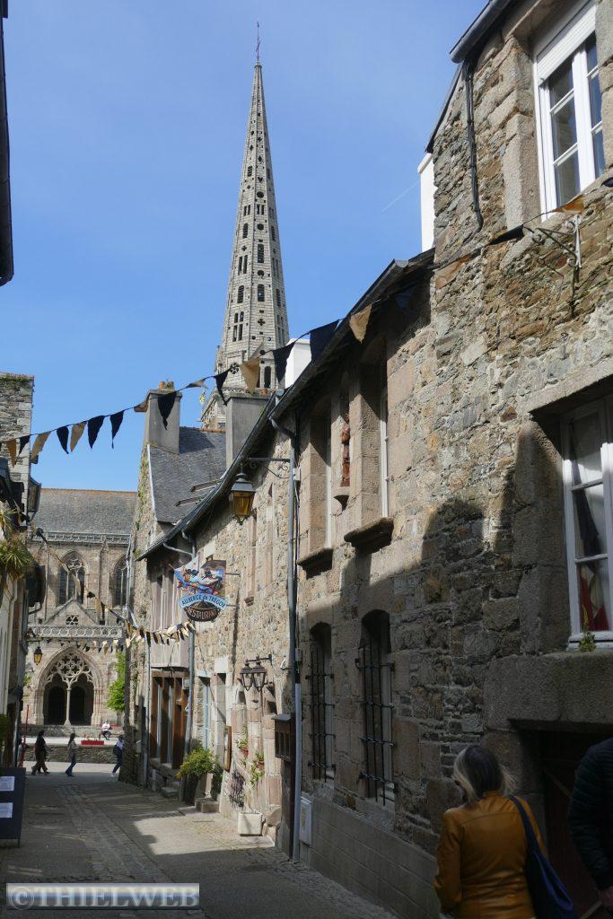 Danach fahren wir weiter landeinwärts nach Tréguier. Über den Dächern der Stadt erhebt sich die 63 m hohe filigrane Spitze der im 12. Jahrhundert errichteten Kathedrale Saint-Tugdual, eine der schönsten der Bretagne. Die Kanzel ist mit Blumenmotiven verziert und im Chorgestühl sind geschnitzte Tiergestalten zu sehen. Bemerkenswert ist der Kreuzgang aus dem 15. Jahrhundert mit seinen 48 Arkaden und das Kloster der Augustinerinnen. In den Gassen des historischen Stadtviertels stehen Fachwerkhäuser und Stadthäuser, die sich bis zum Hafen erstrecken.