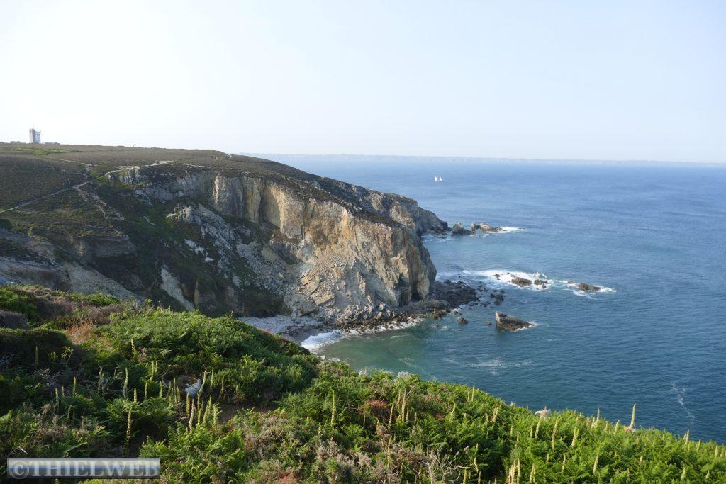 Die Halbinsel Presque’Île de Crozon besitzt sechs weit in’s Meer hinausragende Felskaps, von denen das Cap de la Chévre (Ziegenkap) eines ist. Im Naturpark Armorique gelegen, besitzt es die höchste Steilküste der Halbinsel Presqu´ile de Crozon. Die über 100 m hohe Klippenküste befindet sich gegenüber des Cap Sizun in der Bucht Baie de Douarnenez. Am Kap steht ein Semaphor zur Überwachung von See und Luft und erstellt Wetterberichte für Segler und das Denkmal Mémorial de l´Aéronautique Navale für die verstorbenen französischen Flieger. Unsere Wanderung auf dem Sentier Cotier Nr. 34 führt uns entlang der Klippen durch Heidelandschaft teils mit Kiefernwald und dichtem Farn. Der Wanderweg ist abwechslungsreich mit immer wieder beeindruckenden Aussichten.