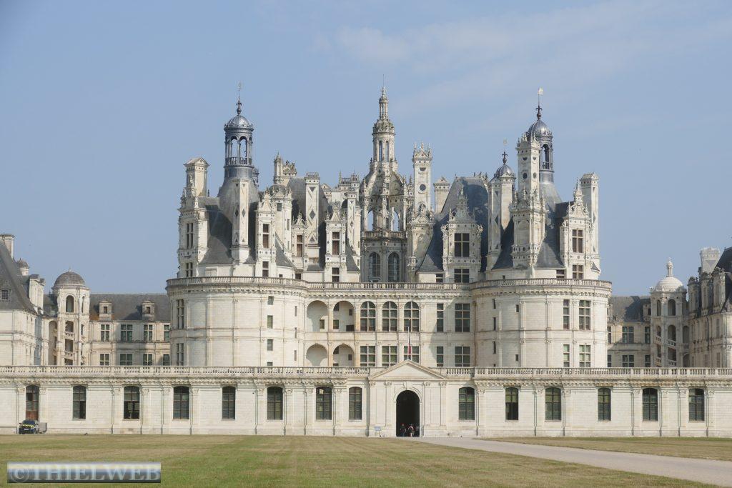 Unsere Radtour bringt uns heute zum Château de Chambord, das größte und prächtigste aller Loire-Schlösser. König Francois I begann nach seiner Thronbesteigung mit dem Bau des Schlosses mit einer Länge von 154 m, einer Breite von 117 m, 77 Treppen, 365 Kaminen und über 400 Räumen. Doch da der Hof nur zu Jagden und Festen hierherkam, stand das Schloss meist leer. Es ist das letzte der Loire-Schlösser, das wir besuchen, und es ist perfekt, dass wir es von außen in seiner vollen Pracht sehen können. Der Radweg bis zum Schloss geht durch den Foret de Boueogne. Über kleine Dörfer, durch Ackerbaugebiet und Weinberge fahren wir zurück nach Tour en Sologne.