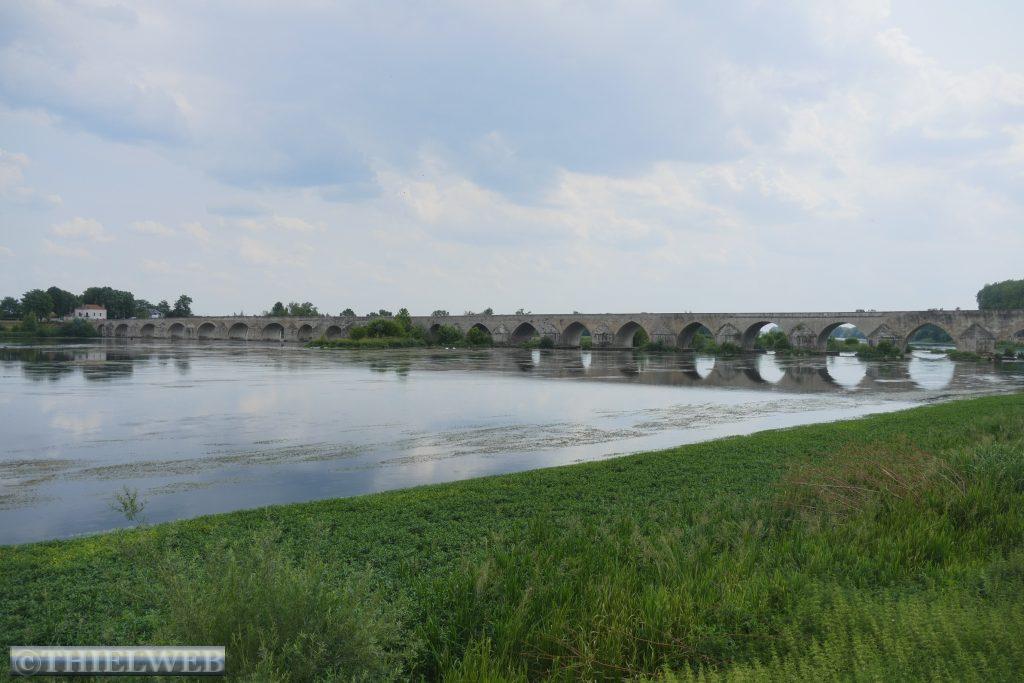 Wir erledigen die Ver- und Entsorgung und fahren weiter zur mittelalterlichen Stadt Beaugency. Sehenswert sind in der Stadt das Schloss, das Rathaus mit seiner Renaissancefassade, der Uhrturm und die ehemalige Abtei Notre-Dame mit ihrer romanischen Abteikirche. Von unserem Stellplatz an der Loire sehen wir direkt auf die alte Brücke von Beaugency.