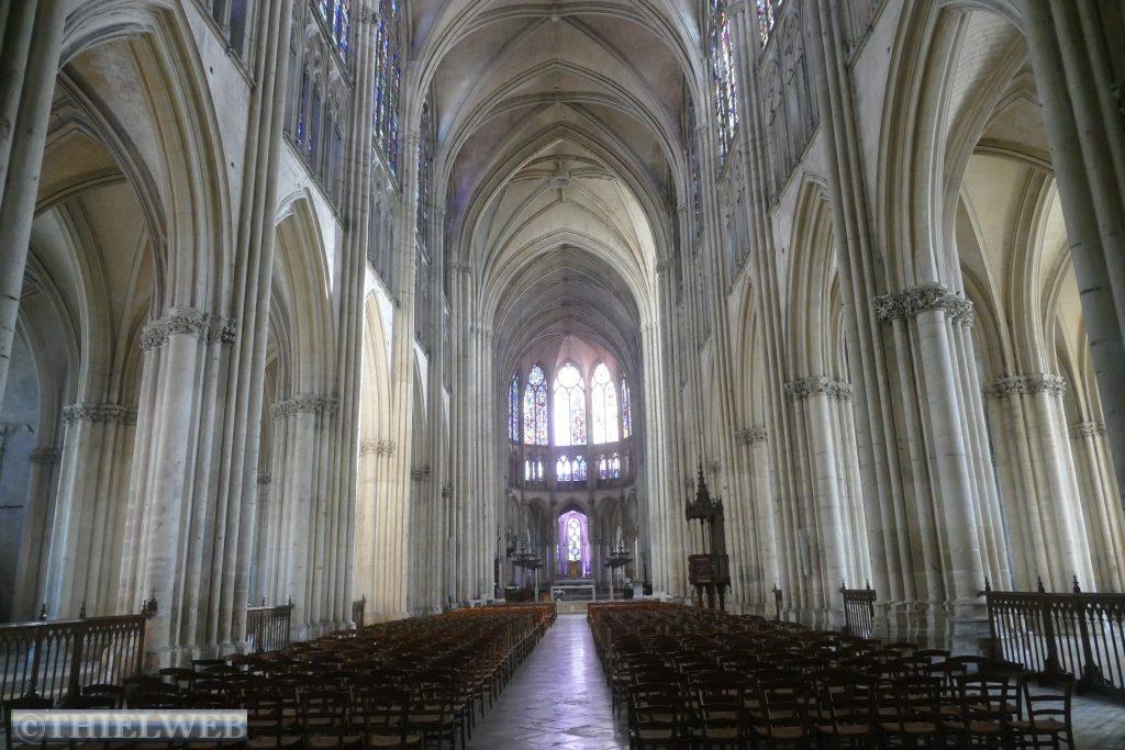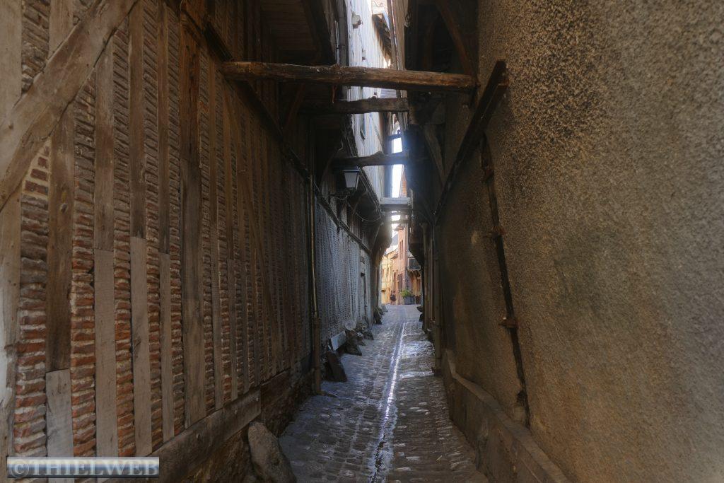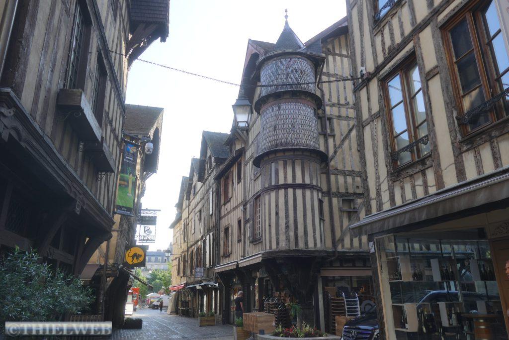 Troyes ist die alte Hauptstadt der Champagne. Das historische Zentrum erinnert an einen Champagnerkorken. Das Aristokraten- und Kirchenviertel bildet die Cité rund um die Kathedrale. Im Bourg, dem Marktviertel stehen viele Fachwerkhäuser. An der gotischen Kathedrale Saint-Pierre-et-Saint-Paul wurde mehr als 400 Jahre gebaut. Es ist ein typischer Bau der Gotik mit 114 m Länge, 50 m Breite und 28,5 m Höhe. Ihr schönster Schmuck sind die 1500 m² Glasfenster. Auch die Kirchen Saint-Nicolas und Saint-Pantaléon mit ihrem hölzernen Gewölbe sowie die Basilika Saint-Urbain zeugen vom Wohlstand der Stadt im 16. Jahrhundert und sind mit wunderschönen Glasfenstern geschmückt. Wir schlendern durch die Gassen mit unzähligen Fachwerkfassaden, Kastanienschindeln und Schachbrettmauerwerk. Eine berühmte Gasse ist die Katzengasse, die so eng ist, dass sich die Giebel fast berühren.