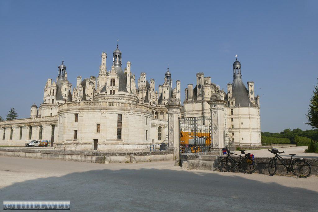 Unsere Radtour bringt uns heute zum Château de Chambord, das größte und prächtigste aller Loire-Schlösser. König Francois I begann nach seiner Thronbesteigung mit dem Bau des Schlosses mit einer Länge von 154 m, einer Breite von 117 m, 77 Treppen, 365 Kaminen und über 400 Räumen. Doch da der Hof nur zu Jagden und Festen hierherkam, stand das Schloss meist leer. Es ist das letzte der Loire-Schlösser, das wir besuchen, und es ist perfekt, dass wir es von außen in seiner vollen Pracht sehen können. Der Radweg bis zum Schloss geht durch den Foret de Boueogne. Über kleine Dörfer, durch Ackerbaugebiet und Weinberge fahren wir zurück nach Tour en Sologne.