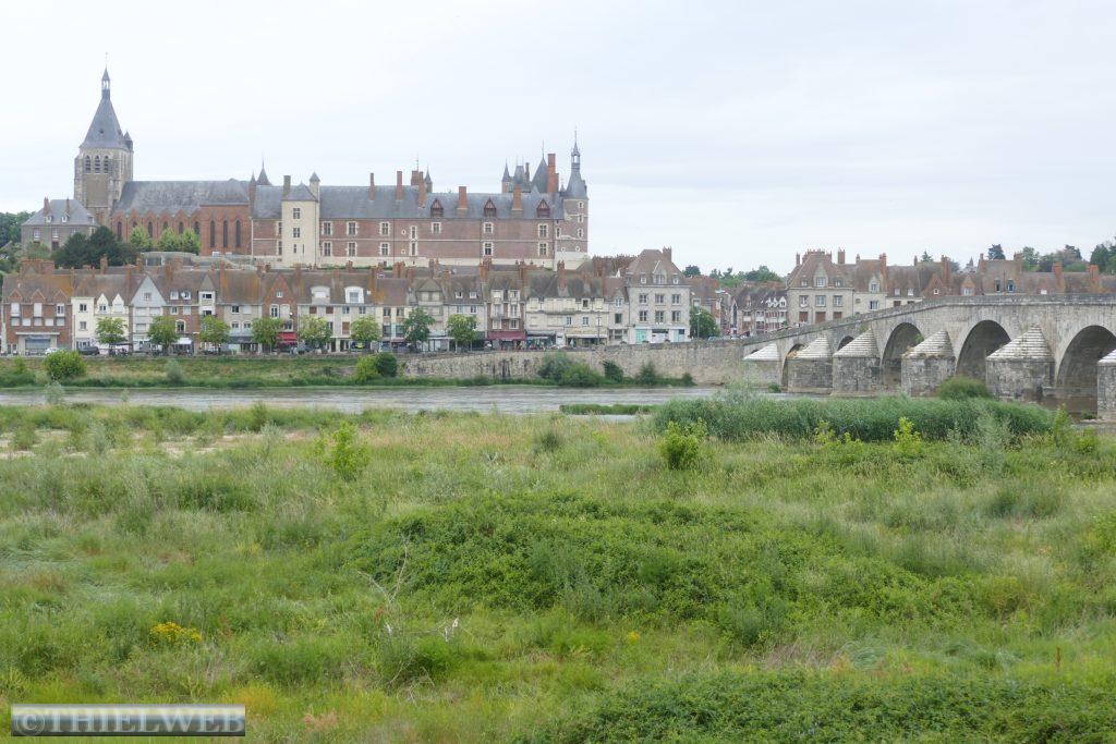 Auf dem Loire-Radweg wollen wir heute nach Briare fahren. Bei der Hinfahrt regnet es ein wenig, doch wir lassen uns nicht abschrecken. Der größte Teil der Strecke geht direkt an der Loire entlang und hat kaum Steigungen. Hauptattraktion ist die Pont-Canal de Briare, eine Kanalbrücke aus Metall, die zwischen 1890 und 1896 erbaut wurde und die Loire in einer riesigen Stufe überspannt, um den Seitenkanal der Loire mit dem Briare-Kanal zu verbinden. Sie ist 660 m lang und 6 m breit und gesäumt von 72 Laternenpfählen und prächtigen Pilastern, die an jedem Ende mit Wappen geschmückt sind. Mittlerweile schafft es die Sonne, sich durchzusetzen. Auf dem Rückweg bestaunen wir noch das Schloss von Gien, aus Backstein und Stein im Hintergrund vor der historischen Steinbrücke „Le Pont et La croix de Saint Nicolas“ über die Loire. In Saint-Godon sehen wir uns die Kirche Saint-Gondon an, die neben dem Priorat steht. Und zu guter Letzt suchen wir in Lion-en-Sullias den seltsamen Stein, der die Kröte genannt wird. Wir fragen eine alte Dame, die uns den Weg sagt. Als wir schon fast aufgeben wollen, sehen wir den Stein hinter Bäumen auf einer Wiese von der Straße aus.