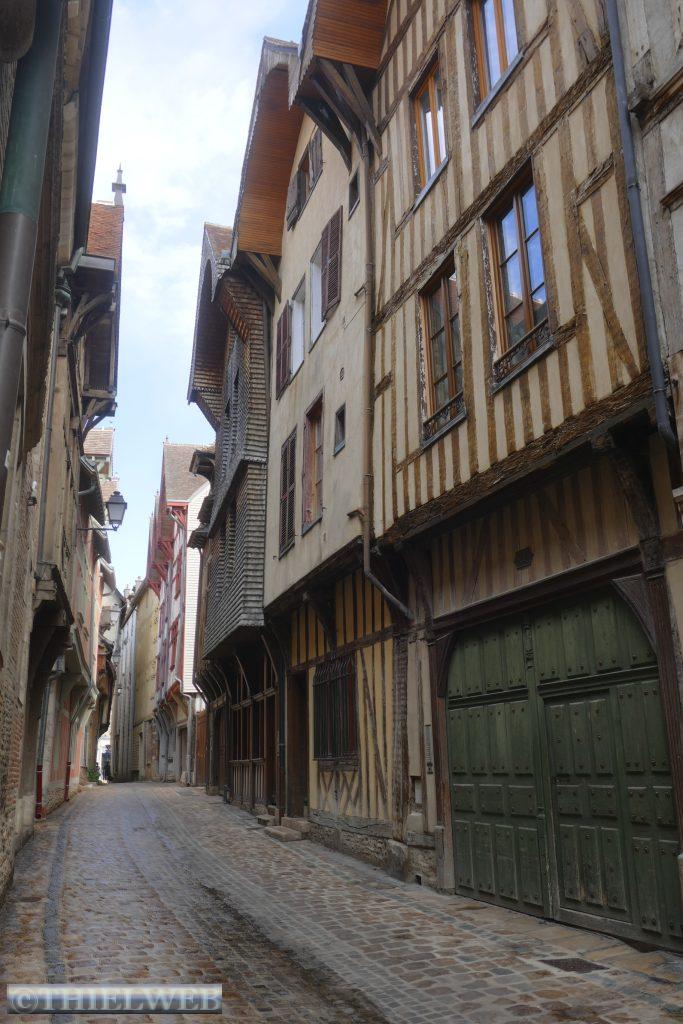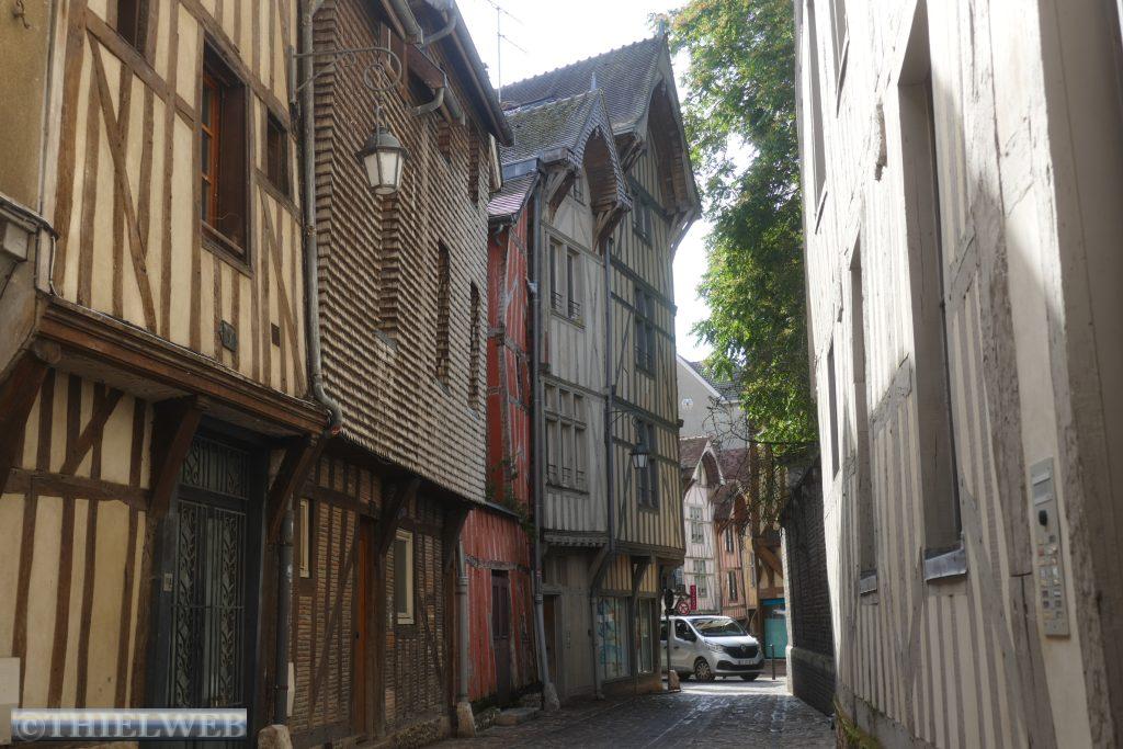 Troyes ist die alte Hauptstadt der Champagne. Das historische Zentrum erinnert an einen Champagnerkorken. Das Aristokraten- und Kirchenviertel bildet die Cité rund um die Kathedrale. Im Bourg, dem Marktviertel stehen viele Fachwerkhäuser. An der gotischen Kathedrale Saint-Pierre-et-Saint-Paul wurde mehr als 400 Jahre gebaut. Es ist ein typischer Bau der Gotik mit 114 m Länge, 50 m Breite und 28,5 m Höhe. Ihr schönster Schmuck sind die 1500 m² Glasfenster. Auch die Kirchen Saint-Nicolas und Saint-Pantaléon mit ihrem hölzernen Gewölbe sowie die Basilika Saint-Urbain zeugen vom Wohlstand der Stadt im 16. Jahrhundert und sind mit wunderschönen Glasfenstern geschmückt. Wir schlendern durch die Gassen mit unzähligen Fachwerkfassaden, Kastanienschindeln und Schachbrettmauerwerk. Eine berühmte Gasse ist die Katzengasse, die so eng ist, dass sich die Giebel fast berühren.