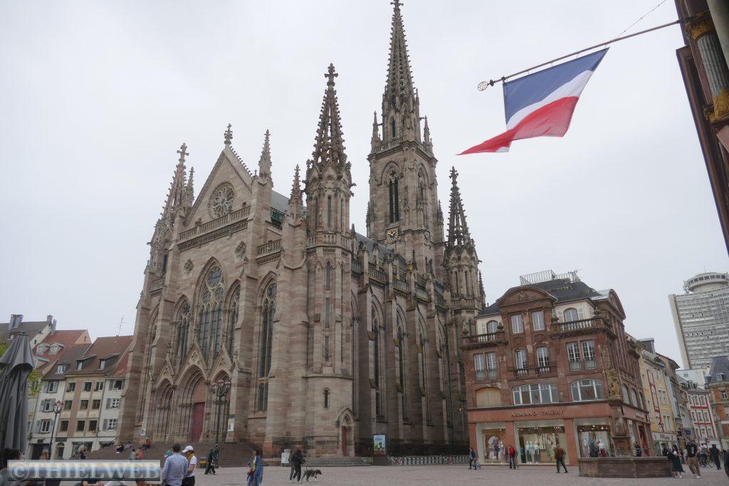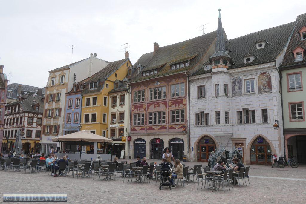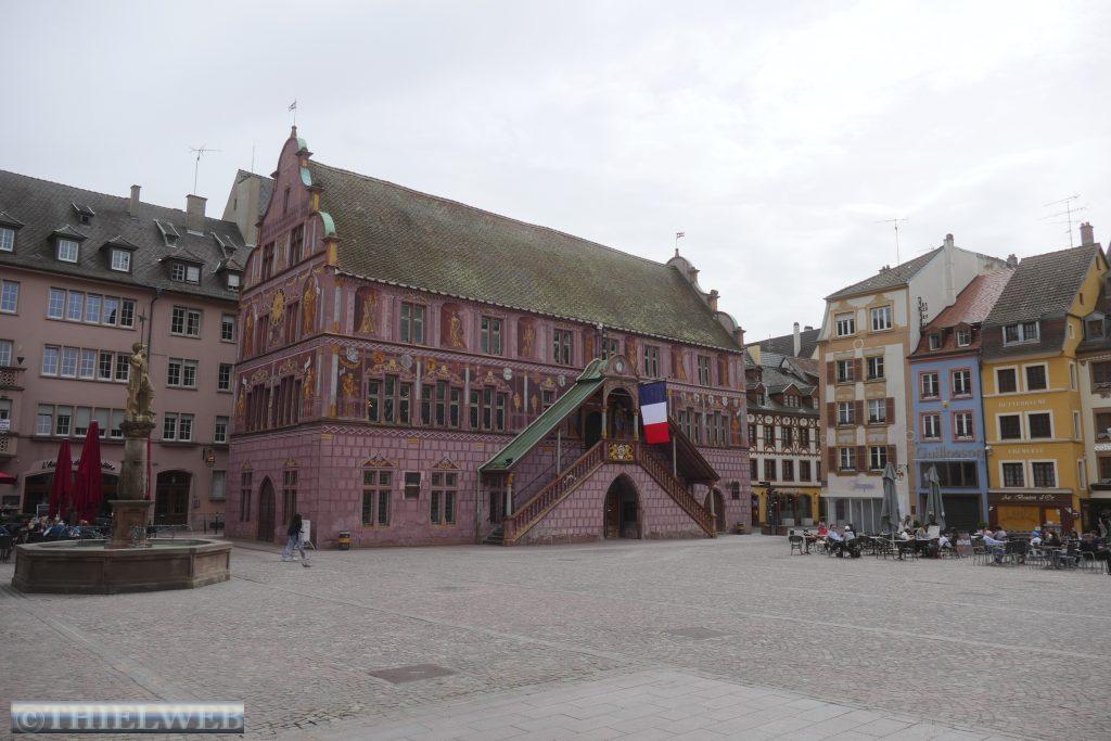 Da die Stadt ansonsten nicht viel zu bieten hat, und der Stellplatz gerade mit einem Rummel belegt ist, fahren wir kurzerhand weiter nach Mulhouse mitten im Dreiländereck Frankreich-Deutschland-Schweiz, ist die Stadt das südliche Tor der elsässischen Weinstraße. Die im Mittelalter entstandene Unterstadt als Viertel der Händler und Handwerker liegt rund um den Platz de la Réunion. Hier befindet sich das wunderschön bemalte Rathaus im rheinischen Rennaissance-Stil und die evangelische Kirche Saint-Etienne. Im Rathaus befindet sich das historische Museum, welches wir besichtigen.