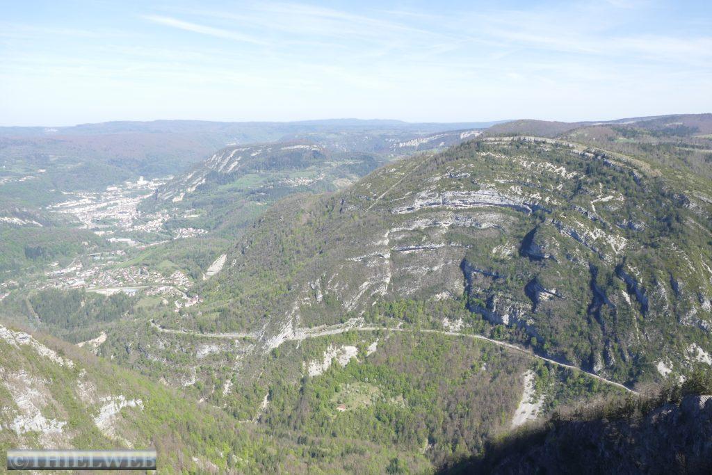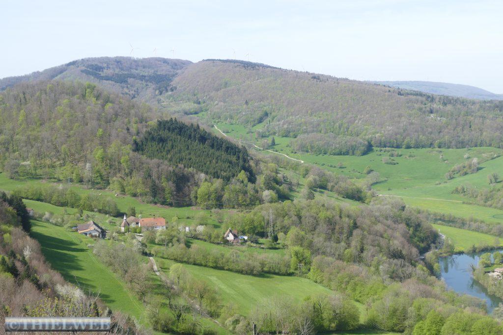 Heute machen wir eine Wanderung mit einem großen Höhenunterschied, die uns im Touristenbüro von Montbéliard vorgeschlagen wurde. Wir fahren ca. 20 km bis nach Pont-de-Roide. Nachdem wir eine ganze Weile steil bergauf gewandert sind, kommen wir zur La Batterie des Roches eines der Kernstücke der Verteidigungsmole des Lomont, die zwischen 1877 und 1879 erbaut wurde und sich von der Nordsee bis zum Mittelmeer erstreckt. Die Festung besteht aus mehreren Teilen und war mit 246 Mann besetzt. Von hier in einer Höhe von 614 m haben wir einen schönen Ausblick auf das Doubs-Tal. Anschließend führt der Wanderweg durch Mischwald immer weiter bergab. Am Wegesrand stehen Buschwindröschen, Himmelschlüsselchen und vereinzelt auch Knabenkraut. Das letzte Stück des Weges ist entlang der Doubs, wo sich auch unser Stellplatz befindet.