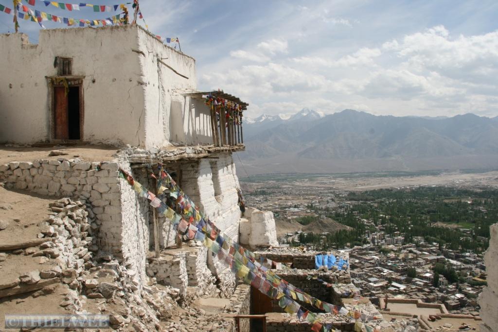 Ganz früh am Morgen müssen wir aufbrechen, um einen weiteren Pass, des Taglang La-Passes (5.328 m), dem höchsten Pass dieser Reise zu überqueren. Es ist der zweithöchste befahrbare Pass der Welt, und da nach dem Winter Ausbesserungsarbeiten erfolgen, ist er nur stundenweise geöffnet. Über die ehemalige Militärstraße erreichen wir Leh. Die 3.500 m hoch gelegene Stadt mit ihren 13.000 Einwohnern ist für viele Ausgangspunkte für den Besuch der Region Zentralladakh. Die Stadt selbst wirkt fast mittelalterlich, wenn man durch die verwinkelten Gassen der Altstadt mit Blick auf die Festung schlendert. Den vielstöckigen Königspalast am Fuße des Tsenmo-Berges erreicht man über eine Treppe am Ende der Hauptstraße. Durch seine hochgezogenen kleinen Fenster und Balkone erinnert die Königsresidenz, gegründet im 16.Jh., an den Potala in Lhasa. Hier ist wieder einmal deutlich zu erkennen, dass die Region sich religiös und kulturell sehr stark an Tibet orientiert. Und hier wird unsere Sehnsucht geboren nach Tibet zu reisen, was Jahre später Wirklichkeit wird.