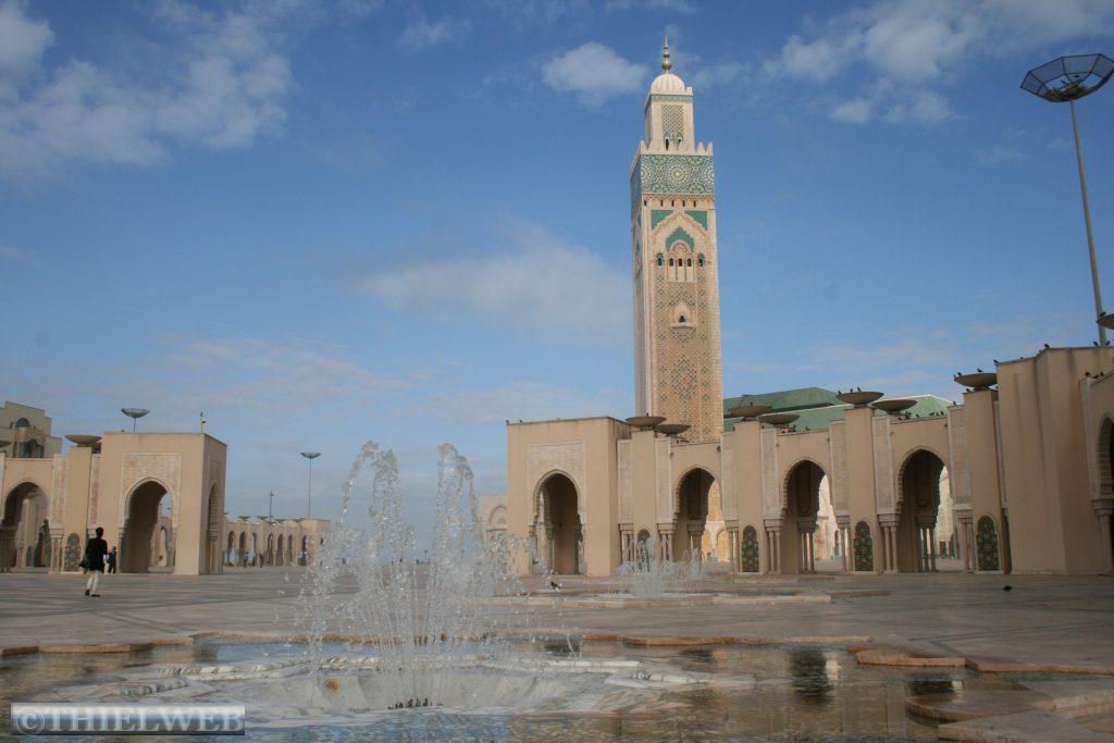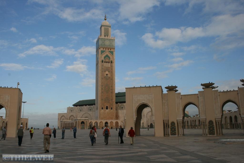 Wir landen in der relativ junge Stadt Casablanca an der Atlantikküste. Casablanca ist die größte Stadt Marokkos und das wirtschaftliche Zentrum mit einem der größten Häfen des Kontinents. Die größte Attraktion der Stadt ist die Hassan-II.-Moschee. Sie ist nach der Moschee in Mekka die weltweit zweitgrößte Moschee, ihr Minarett ist mit 210 Metern sogar das höchste der Welt (und damit auch das höchste religiöse Bauwerk der Welt). Bis zu 25.000 Personen finden in der Gebetshalle von 20.000 Quadratmetern Platz. Technische Besonderheiten sind ein sich automatisch öffnendes Dach, Fußbodenheizung in der Gebetshalle und ein grüner Laserstrahl, der nachts Richtung Mekka zeigt. Historische Sehenswürdigkeiten sind in Casablanca weniger zu finden.