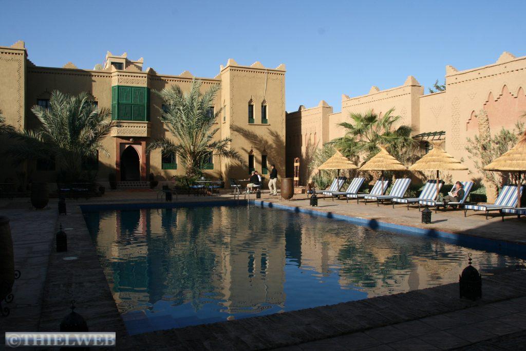 Über die Straße der 1000 Kasbahs und mit Sicht auf die mächtigen Gipfel der schneebedeckten 4000er fuhren wir schließlich bis nach Ouarzazate. Viele berühmte Hollywoodstreifen (Lawrence von Arabien, Die Mumie, Gladiator,…) sind hier gedreht worden und auch in unserem Hotel war eine deutsche Crew untergebracht.